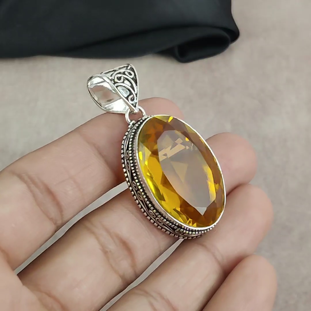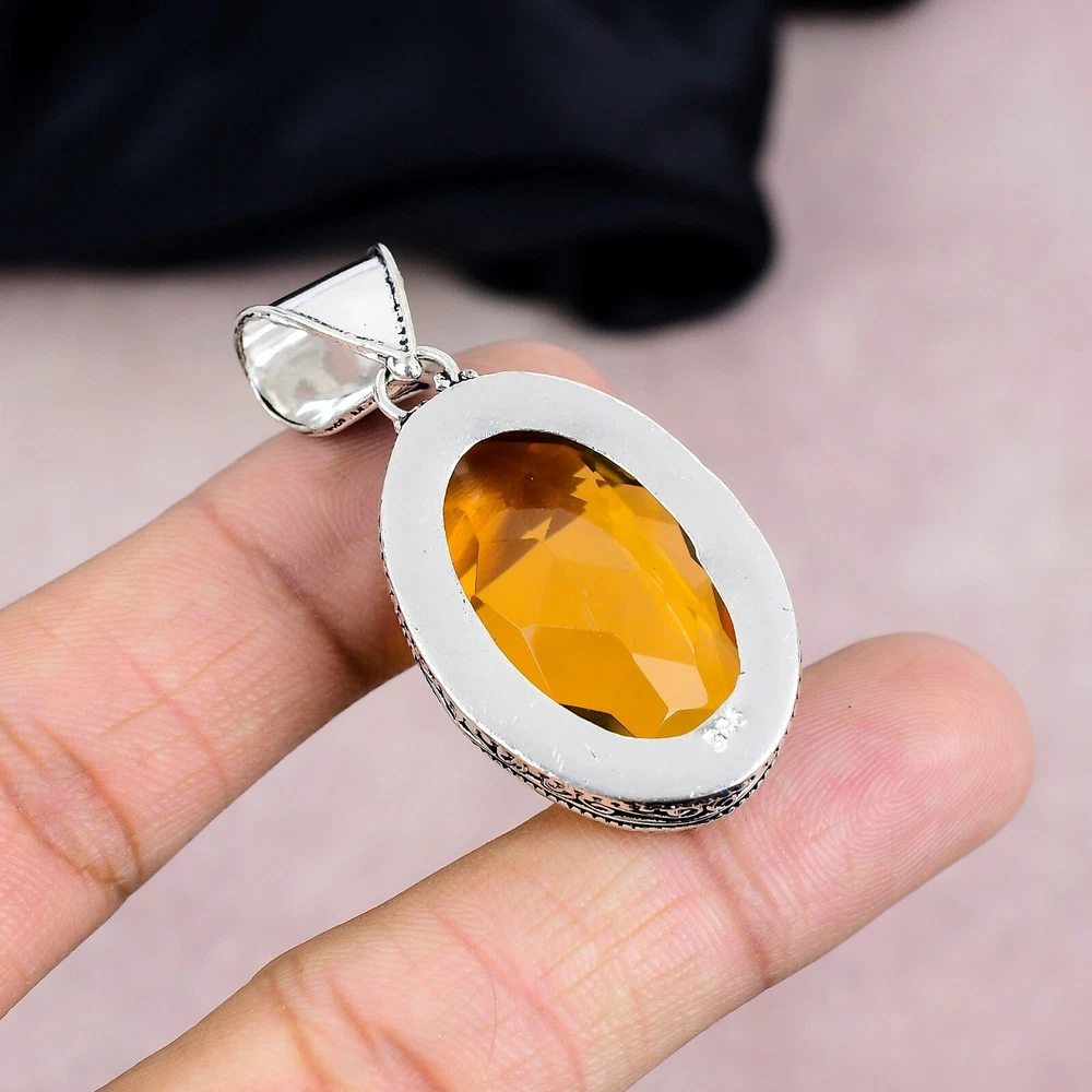 HomeCitrine Gemstone Pendant in 925 Sterling Silver Handmade Jewelry Gift for Her