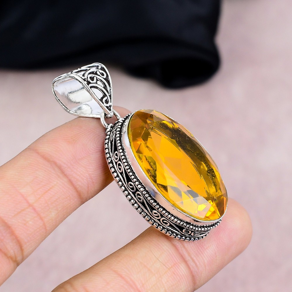 $ 39.6Citrine Gemstone Pendant in 925 Sterling Silver Handmade Jewelry Gift for Parties