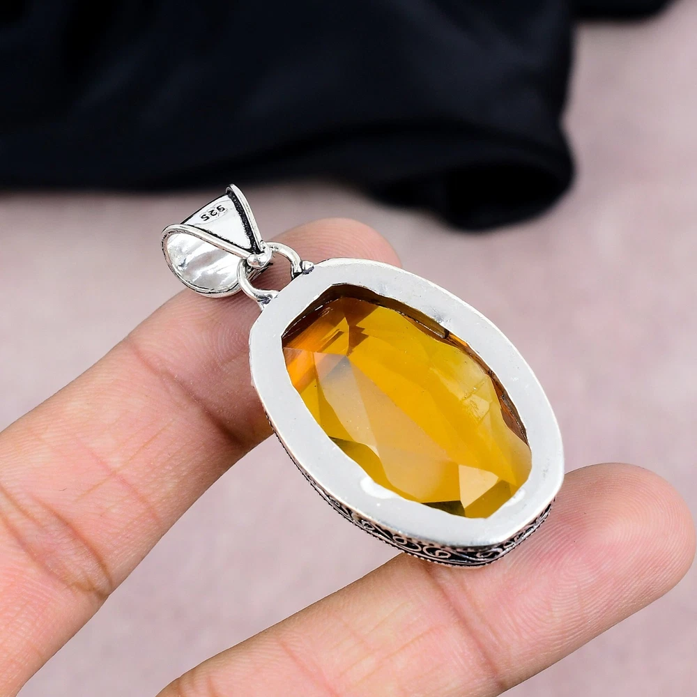 HomeCitrine Gemstone Pendant in 925 Sterling Silver Handmade Jewelry Gift