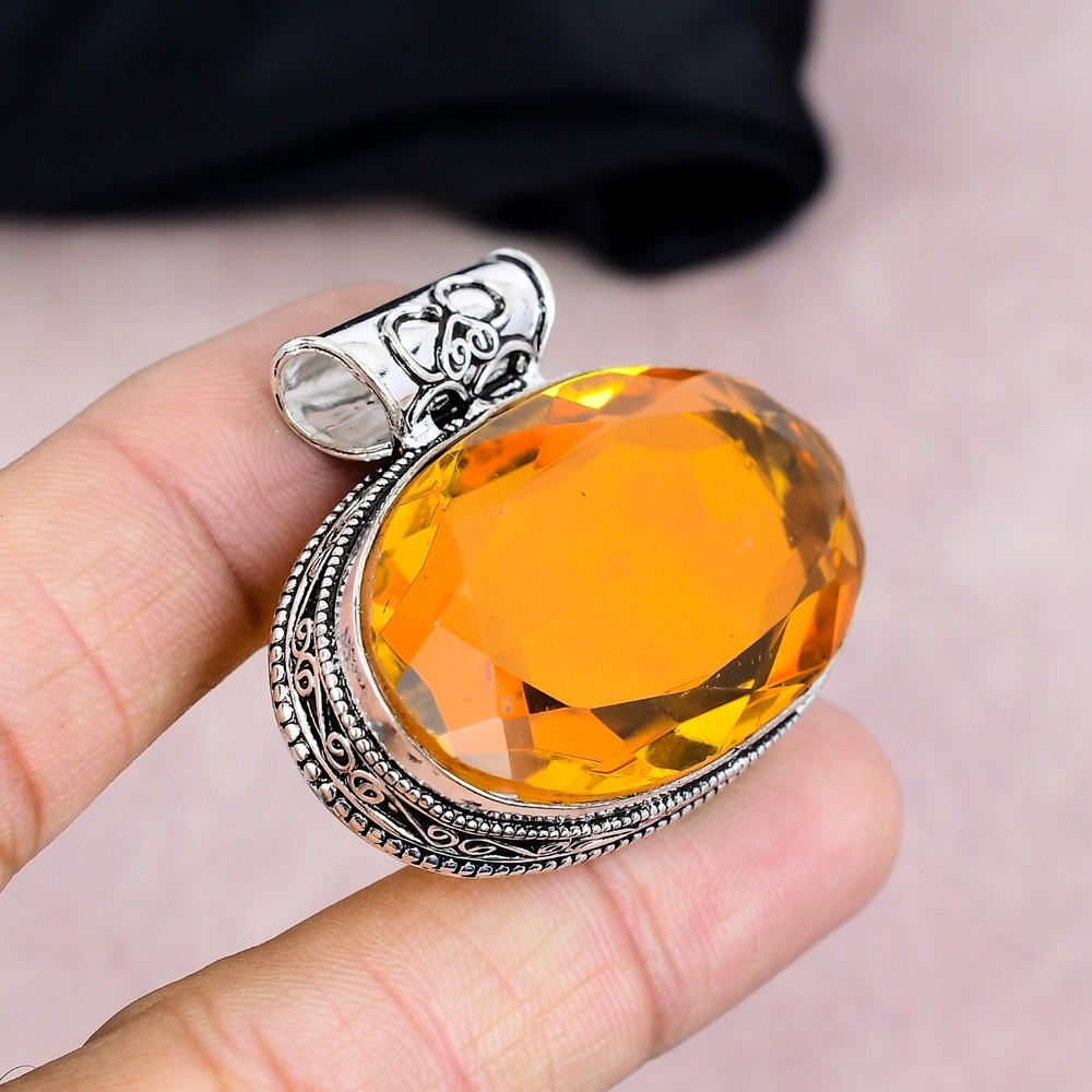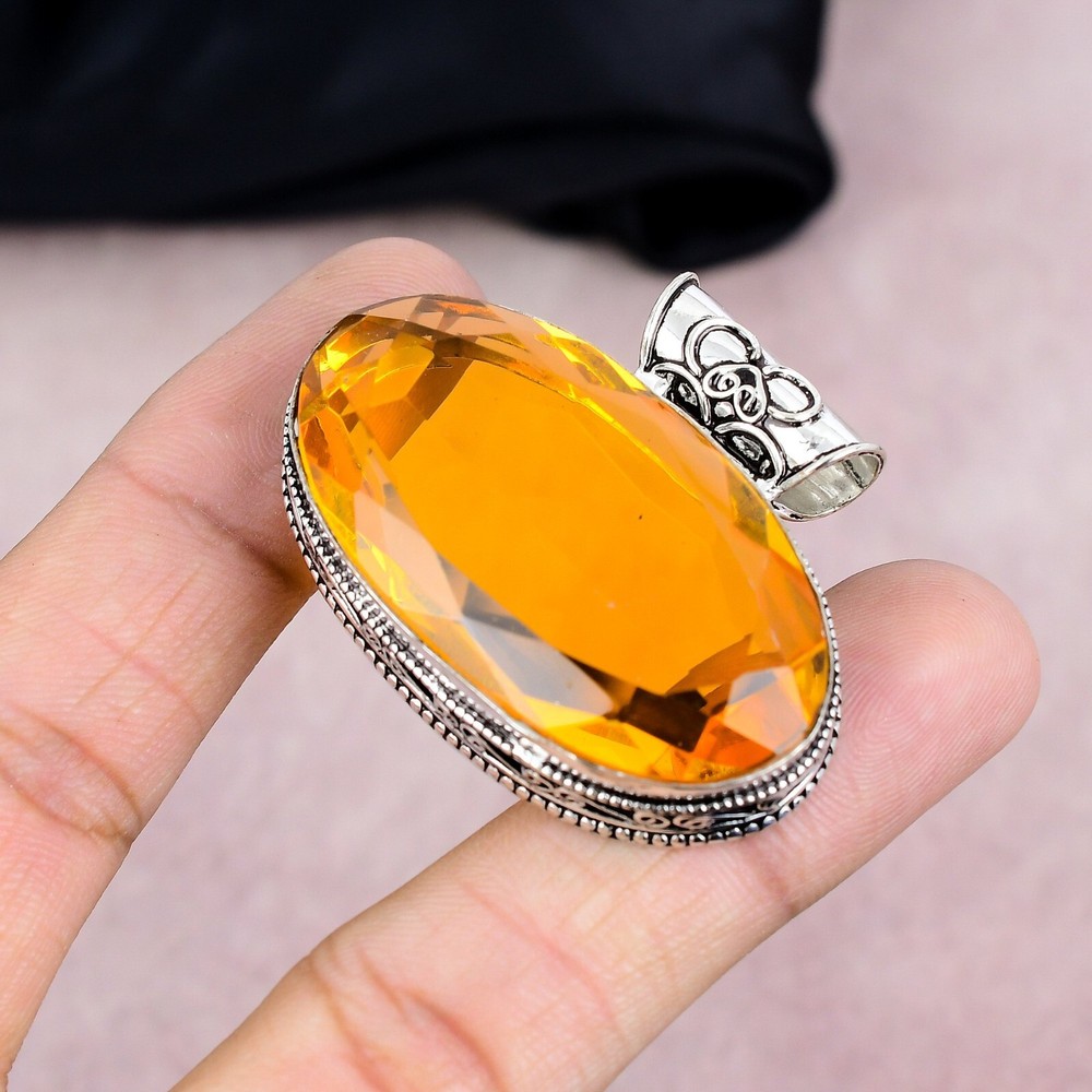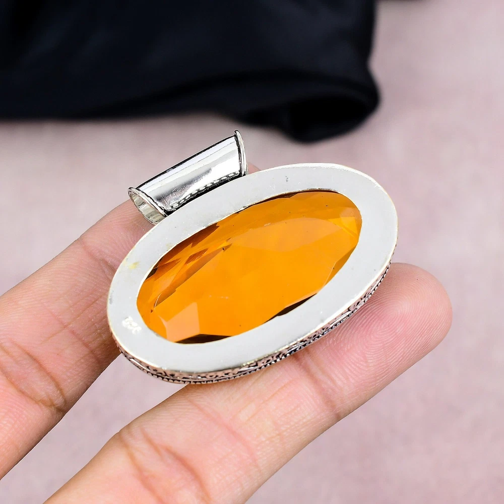 HomeCitrine Gemstone Pendant in 925 Sterling Silver Handmade Jewelry Gift
