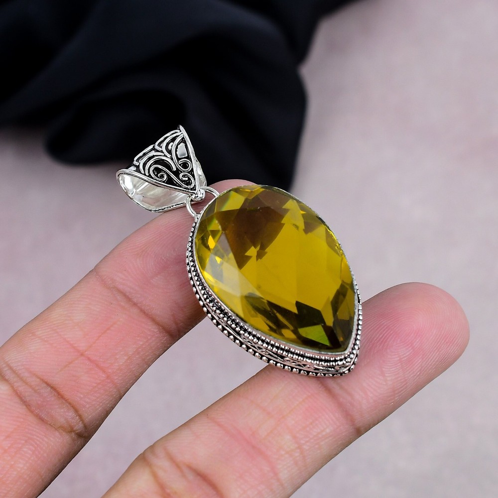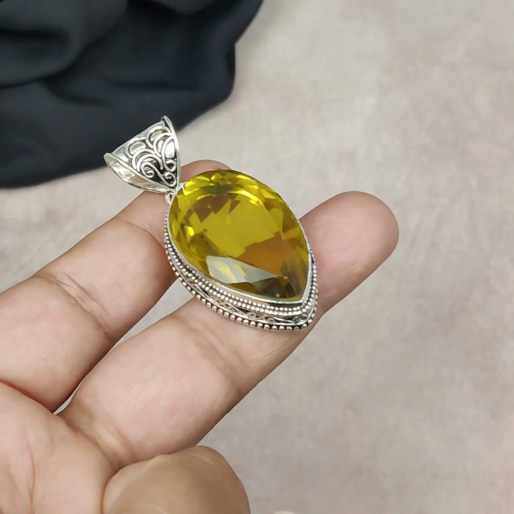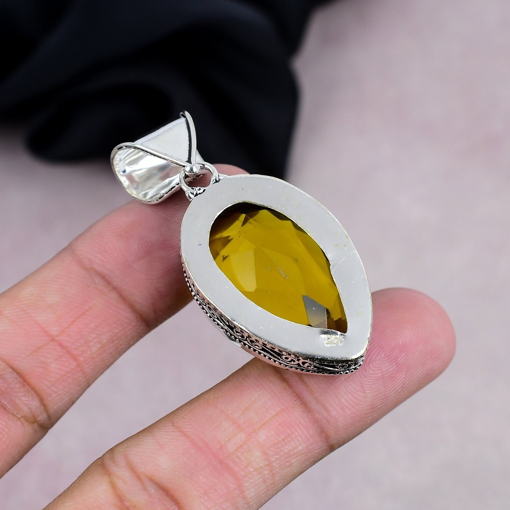 Dainty yellow citrine sterling silver pendant jewelry gift