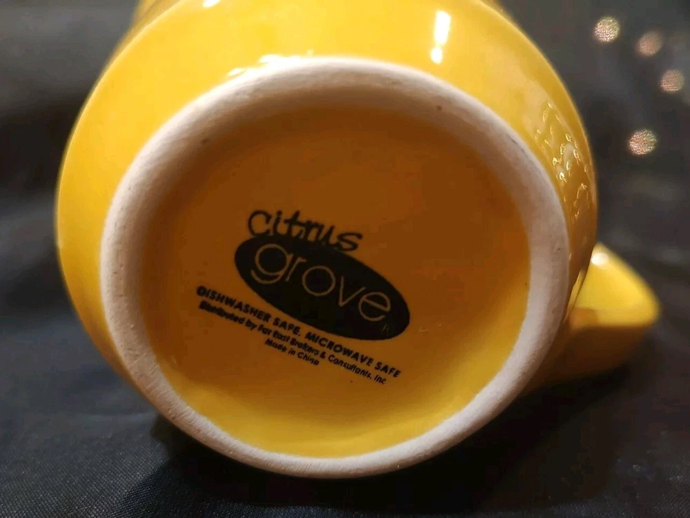 Citrus Grove 14 oz. Yellow Coffee Tea Or Hot Chocolate Mug, Unique Design, good condition, no chips cracks or stains.