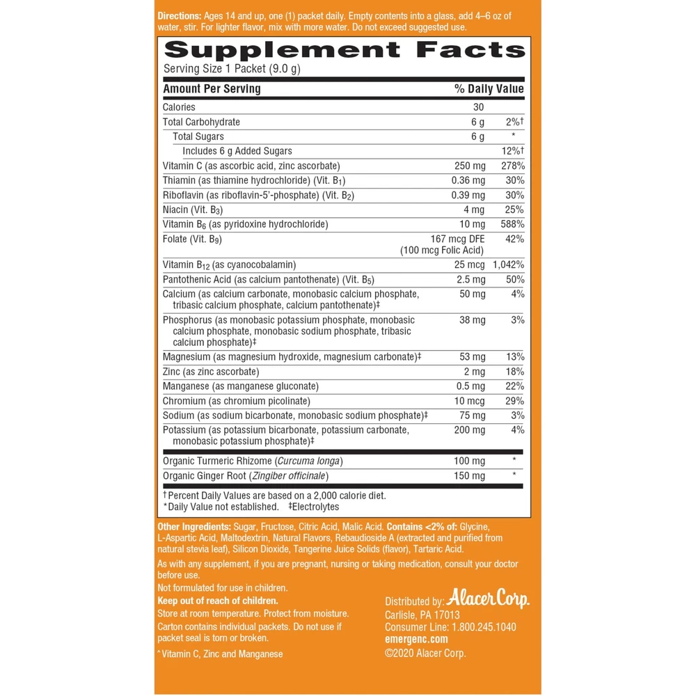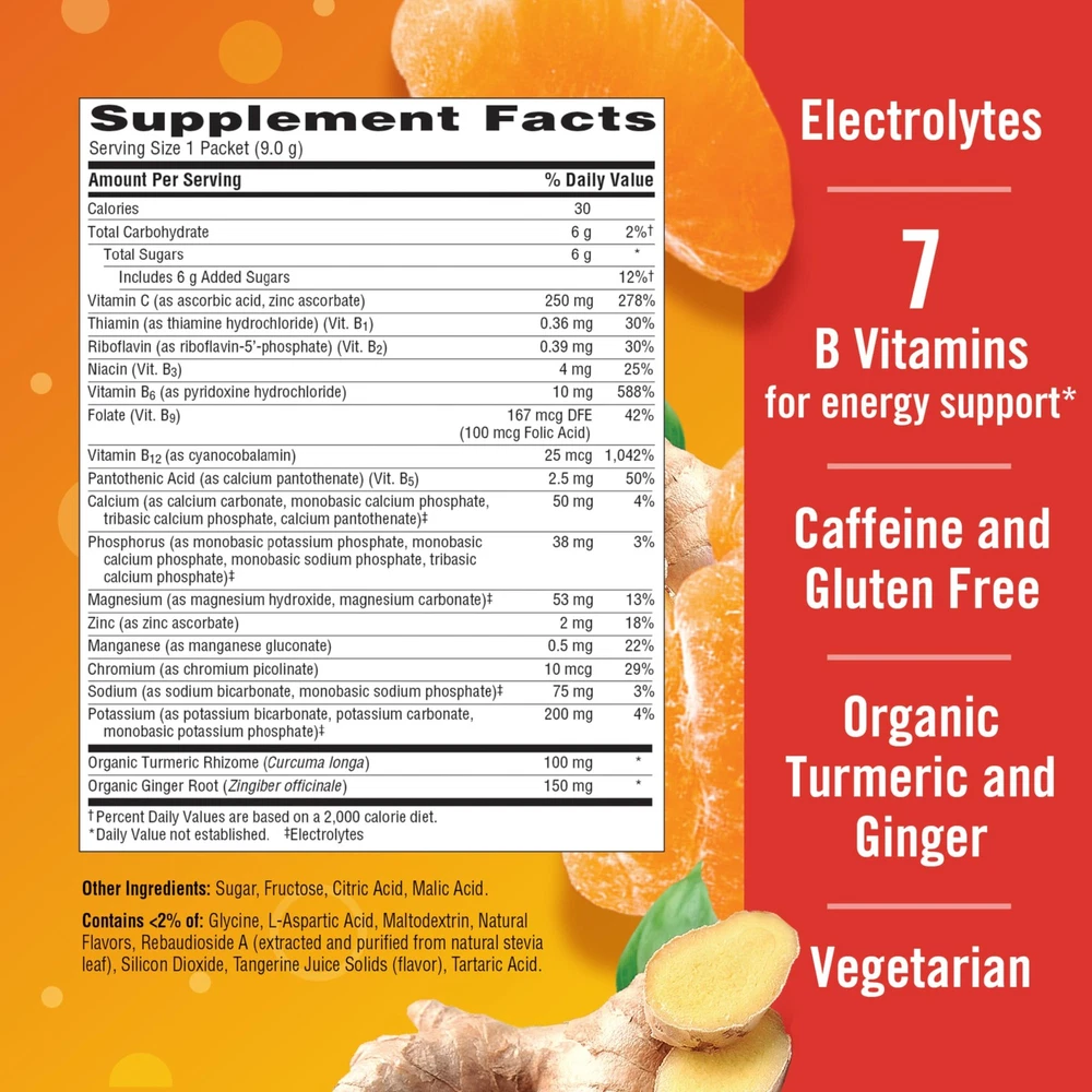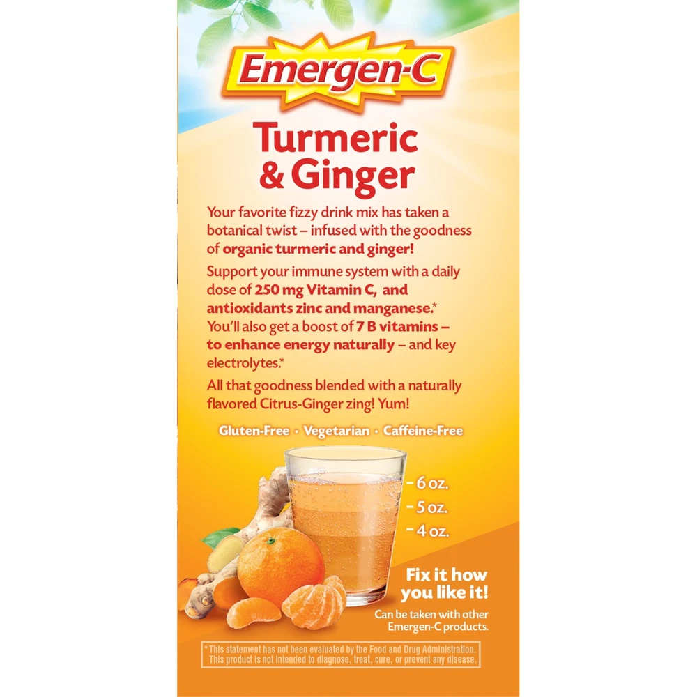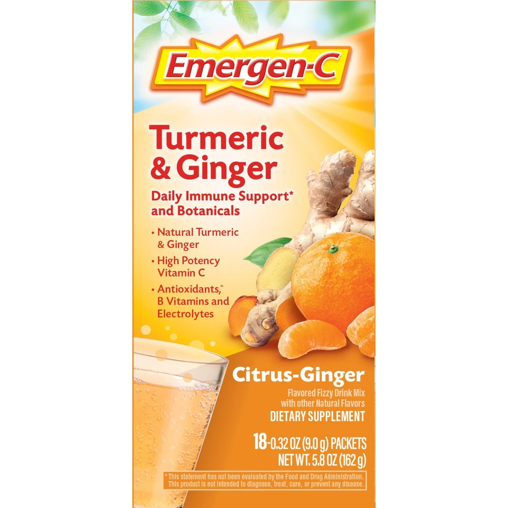 Turmeric & Ginger fizzy drink mix provides immune system support with the natural goodness of botanicals Crafted with organic turmeric and ginger, natural fruit flavors, this vegetarian, gluten-free and caffeine-free citrus-ginger drink powder is the perfect fit for holistic wellness Everyday immune support with high potency Vitamin C This citrus-ginger drink mix supports your immunity with high potency vitamin C, antioxidants Zinc and Manganese, and B vitamins to naturally enhance your energy Experience the power of and the goodness of botanicals with the great tasting Citrus-Ginger fizzy drink mix, which makes immune support simple, even on the go