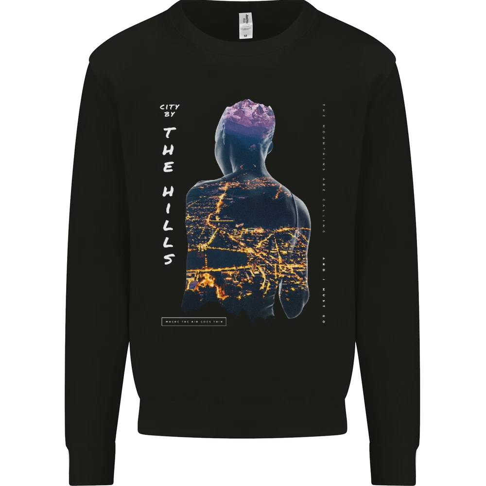 City Lights & Mountains Double Exposure Mens Sweatshirt Jumper