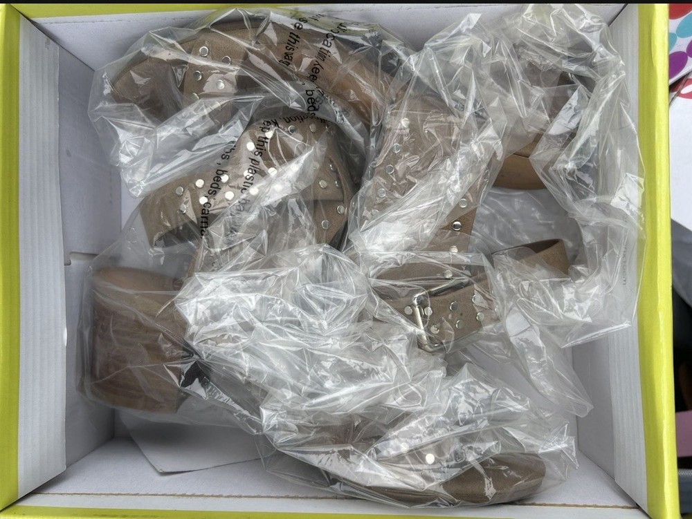 Cityclassified Studded Block Heel Taupe Faux Suede Sandals Women's 5.5
