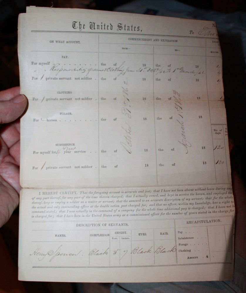 Civil War Pay Voucher Lt Edward Rogers 1863 PA 93rd Infantry Black Servant