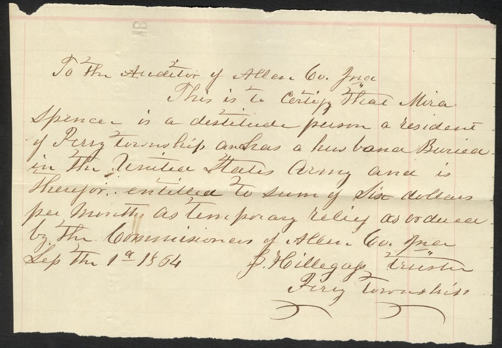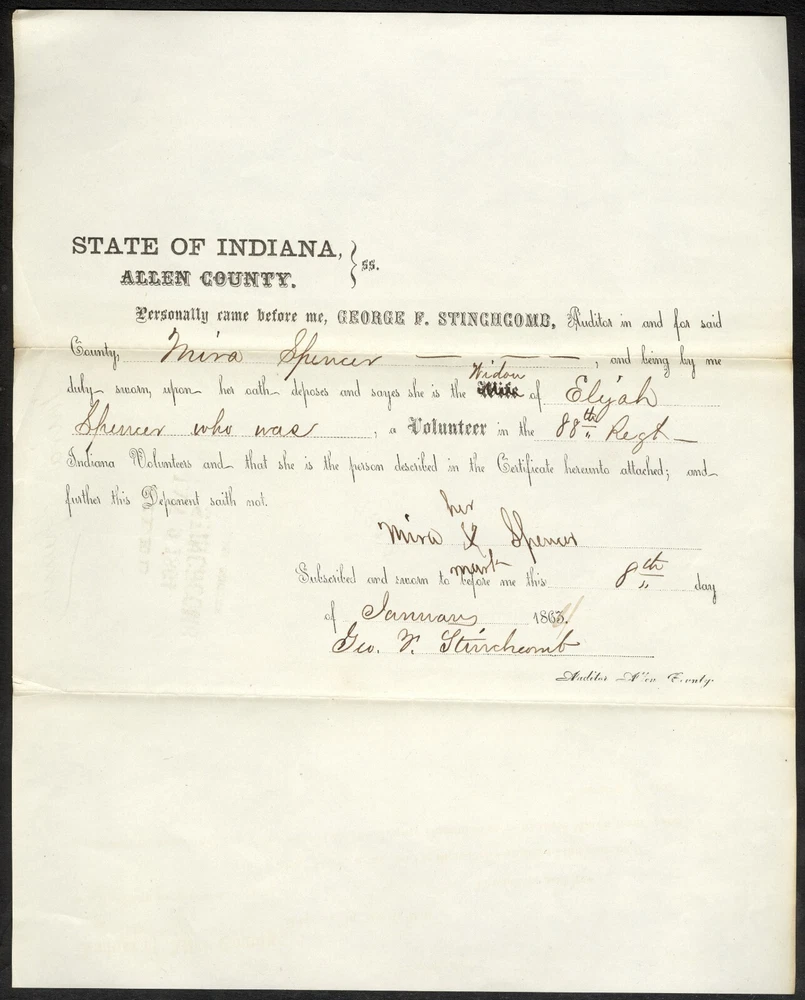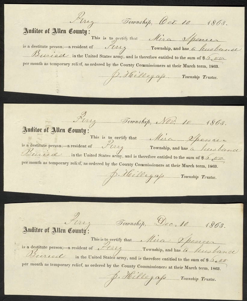 Civil War Widow’s 6 Piece Document Group - Perry, Allen County, Indiana