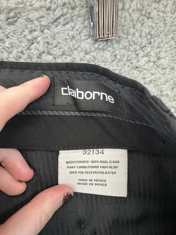 Elevate your wardrobe with the timeless sophistication of Claiborne's men's black pleated dress pants. Crafted for a regular fit with a mid-rise waist and straight leg style, these pants offer a versatile look that's perfect for business meetings or evening events. The size 34 waist with a 34-inch inseam ensures a comfortable fit for a variety of body types. These dress pants are meticulously made from quality wool fabric, providing both warmth and durability. They feature a classic solid black color, essential for a sharp, professional ensemble. Practical elements include slash pockets for essentials and a zip and button closure for a secure fit. Designed to be machine washable, these pants are as easy to care for as they are stylish.