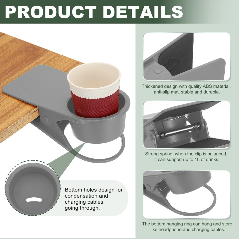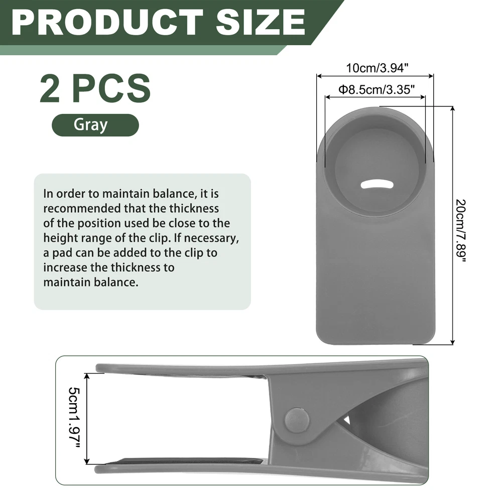 Document The product is made of plastic and metal with a black sponge pad at the cleat to provide a good grip and hold tightly to the edge of the table and chair to prevent scratching. The cup holder has openings on the bottom, can be used to dispense cold drink condensation or to thread a cable when charging a cell phone. Suitable for all kinds of bottles and cups, you can also use it as an organizer, use it on boats, beach chairs, patio chairs, swings, and desks.SpecificationColor: GrayMaterial: ABS, MetalCup Holder Size: 8.5x7.5x4.8 cm / 3.35x2.95x1.89 inchMaximum Clip Distance: 5 cm / 1.97 inchPackage Included: Cup Holder Clip x 2AdvantageClips onto the desktop to save space and reduce the risk of spills.Holds not only drinks, but also cell phones, stationery and more.InstallationClamp the cup holder firmly to the edge and push it in to the end to ensure that it is securely placed, clean the cup holder after use to ensure that it is dry and hygienic.To keep the clamps balanced, you can put padding at the clamps depending on the usage scenario.NoteEnsure that the tabletop thickness does not exceed the maximum limit of the product.Although the ABS material can withstand beverages at any temperature, avoid placing hot items for extended periods of time. Clamp on Table Bottle Clip Couch Holder for Desk Chairs Coffee Mug, Gray, 2 Pcs The product is made of plastic and metal with a black sponge pad at the cleat to provide a good grip and hold tightly to the edge of the table and chair to prevent scratching. The cup holder has openings on the bottom, can be used to dispense cold drink condensation or to thread a cable when charging a cell phone. Suitable for all kinds of bottles and cups, you can also use it as an organizer, use it on boats, beach chairs, patio chairs, swings, and desks. Specification Color: Gray Material: ABS, Metal Cup Holder Size: 8.5x7.5x4.8 cm / 3.35x2.95x1.89 inch Maximum Clip Distance: 5 cm / 1.97 inch Package Included: Cup Holder Clip x 2 Advantage Clips onto the desktop to save space and reduce the risk of spills. Holds not only drinks, but also cell phones, stationery and more. Installation Clamp the cup holder firmly to the edge and push it in to the end to ensure that it is securely placed, clean the cup holder after use to ensure that it is dry and hygienic. To keep the clamps balanced, you can put padding at the clamps depending on the usage scenario. Note Ensure that the tabletop thickness does not exceed the maximum limit of the product. Although the ABS material can withstand beverages at any temperature, avoid placing hot items for extended periods of time. Hot Item Payment 1.We accept eBay payment . 2.Payment must be received within 7 business days of auction closing. Shipping 1.We ship to your eBay or Paypal address. Please make sure your eBay and Paypal address is correct before you pay. 2.Items will be shipped within 1-3 business day when we received payment. 3.Delivery time depends on destination and other factors. Description Policy Clamp on Table Bottle Clip Couch Holder for Desk Chairs Coffee Mug, Gray, 2 Pcs The product is made of plastic and metal with a black sponge pad at the cleat to provide a good grip and hold tightly to the edge of the table and chair to prevent scratching. The cup holder has openings on the bottom, can be used to dispense cold drink condensation or to thread a cable when charging a cell phone. Suitable for all kinds of bottles and cups, you can also use it as an organizer, use it on boats, beach chairs, patio chairs, swings, and desks. Specification Color: Gray Material: ABS, Metal Cup Holder Size: 8.5x7.5x4.8 cm / 3.35x2.95x1.89 inch Maximum Clip Distance: 5 cm / 1.97 inch Package Included: Cup Holder Clip x 2 Advantage Clips onto the desktop to save space and reduce the risk of spills. Holds not only drinks, but also cell phones, stationery and more. Installation Clamp the cup holder firmly to the edge and push it in to the end to ensure that it is securely placed, clean the cup holder after use to ensure that it is dry and hygienic. To keep the clamps balanced, you can put padding at the clamps depending on the usage scenario. Note Ensure that the tabletop thickness does not exceed the maximum limit of the product. Although the ABS material can withstand beverages at any temperature, avoid placing hot items for extended periods of time. Hot Item Payment 1.We accept eBay payment . 2.Payment must be received within 7 business days of auction closing. Shipping 1.We ship to your eBay or Paypal address. Please make sure your eBay and Paypal address is correct before you pay. 2.Items will be shipped within 1-3 business day when we received payment. 3.Delivery time depends on destination and other factors.