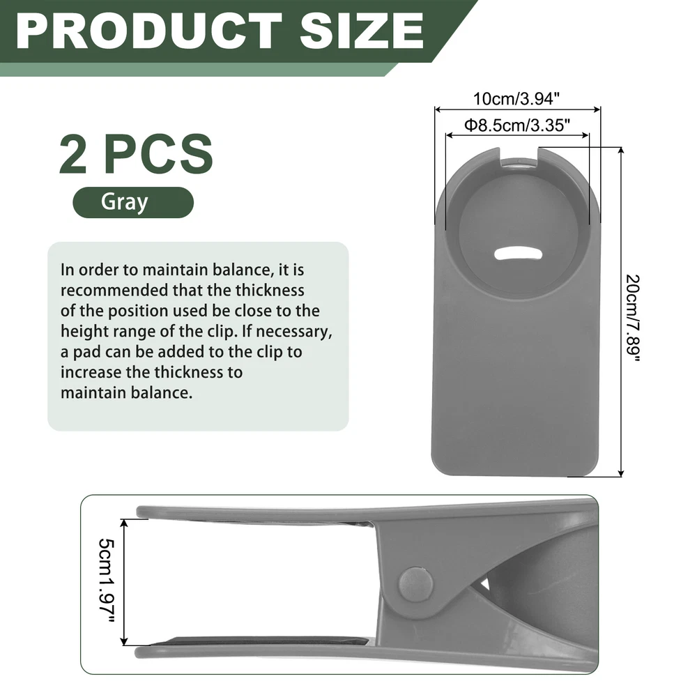 Document The product is made of plastic and metal with a black sponge pad at the cleat to provide a good grip and hold tightly to the edge of the table and chair to prevent scratching. The cup holder has openings on the side and bottom, the side opening is convenient for storing cups with handles, like mugs, and the bottom opening can be used to dispense cold drink condensation or to thread a cable when charging a cell phone. Suitable for all kinds of bottles and cups, you can also use it as an organizer, use it on boats, beach chairs, patio chairs, swings, and desks.SpecificationColor: GrayMaterial: ABS, MetalCup Holder Size: 8.5x7.5x4.8 cm / 3.35x2.95x1.89 inchMaximum Clip Distance: 5 cm / 1.97 inchPackage Included: Cup Holder Clip x 2AdvantageClips onto the desktop to save space and reduce the risk of spills.Holds not only drinks, but also cell phones, stationery and more.InstallationClamp the cup holder firmly to the edge and push it in to the end to ensure that it is securely placed, clean the cup holder after use to ensure that it is dry and hygienic.To keep the clamps balanced, you can put padding at the clamps depending on the usage scenario.NoteEnsure that the tabletop thickness does not exceed the maximum limit of the product.Although the ABS material can withstand beverages at any temperature, avoid placing hot items for extended periods of time. Clamp on Table Bottle Clip Holder with Side Open for Desk Chairs, Gray, 2 Pcs The product is made of plastic and metal with a black sponge pad at the cleat to provide a good grip and hold tightly to the edge of the table and chair to prevent scratching. The cup holder has openings on the side and bottom, the side opening is convenient for storing cups with handles, like mugs, and the bottom opening can be used to dispense cold drink condensation or to thread a cable when charging a cell phone. Suitable for all kinds of bottles and cups, you can also use it as an organizer, use it on boats, beach chairs, patio chairs, swings, and desks. Specification Color: Gray Material: ABS, Metal Cup Holder Size: 8.5x7.5x4.8 cm / 3.35x2.95x1.89 inch Maximum Clip Distance: 5 cm / 1.97 inch Package Included: Cup Holder Clip x 2 Advantage Clips onto the desktop to save space and reduce the risk of spills. Holds not only drinks, but also cell phones, stationery and more. Installation Clamp the cup holder firmly to the edge and push it in to the end to ensure that it is securely placed, clean the cup holder after use to ensure that it is dry and hygienic. To keep the clamps balanced, you can put padding at the clamps depending on the usage scenario. Note Ensure that the tabletop thickness does not exceed the maximum limit of the product. Although the ABS material can withstand beverages at any temperature, avoid placing hot items for extended periods of time. Hot Item Payment 1.We accept eBay payment . 2.Payment must be received within 7 business days of auction closing. Shipping 1.We ship to your eBay or Paypal address. Please make sure your eBay and Paypal address is correct before you pay. 2.Items will be shipped within 1-3 business day when we received payment. 3.Delivery time depends on destination and other factors. Description Policy Clamp on Table Bottle Clip Holder with Side Open for Desk Chairs, Gray, 2 Pcs The product is made of plastic and metal with a black sponge pad at the cleat to provide a good grip and hold tightly to the edge of the table and chair to prevent scratching. The cup holder has openings on the side and bottom, the side opening is convenient for storing cups with handles, like mugs, and the bottom opening can be used to dispense cold drink condensation or to thread a cable when charging a cell phone. Suitable for all kinds of bottles and cups, you can also use it as an organizer, use it on boats, beach chairs, patio chairs, swings, and desks. Specification Color: Gray Material: ABS, Metal Cup Holder Size: 8.5x7.5x4.8 cm / 3.35x2.95x1.89 inch Maximum Clip Distance: 5 cm / 1.97 inch Package Included: Cup Holder Clip x 2 Advantage Clips onto the desktop to save space and reduce the risk of spills. Holds not only drinks, but also cell phones, stationery and more. Installation Clamp the cup holder firmly to the edge and push it in to the end to ensure that it is securely placed, clean the cup holder after use to ensure that it is dry and hygienic. To keep the clamps balanced, you can put padding at the clamps depending on the usage scenario. Note Ensure that the tabletop thickness does not exceed the maximum limit of the product. Although the ABS material can withstand beverages at any temperature, avoid placing hot items for extended periods of time. Hot Item Payment 1.We accept eBay payment . 2.Payment must be received within 7 business days of auction closing. Shipping 1.We ship to your eBay or Paypal address. Please make sure your eBay and Paypal address is correct before you pay. 2.Items will be shipped within 1-3 business day when we received payment. 3.Delivery time depends on destination and other factors.