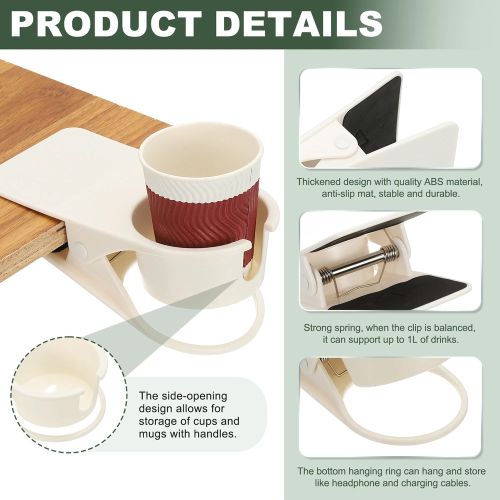 Clamp on Table Bottle Clip Holder with Side Open for Desk Chairs, White, 2 Pcs