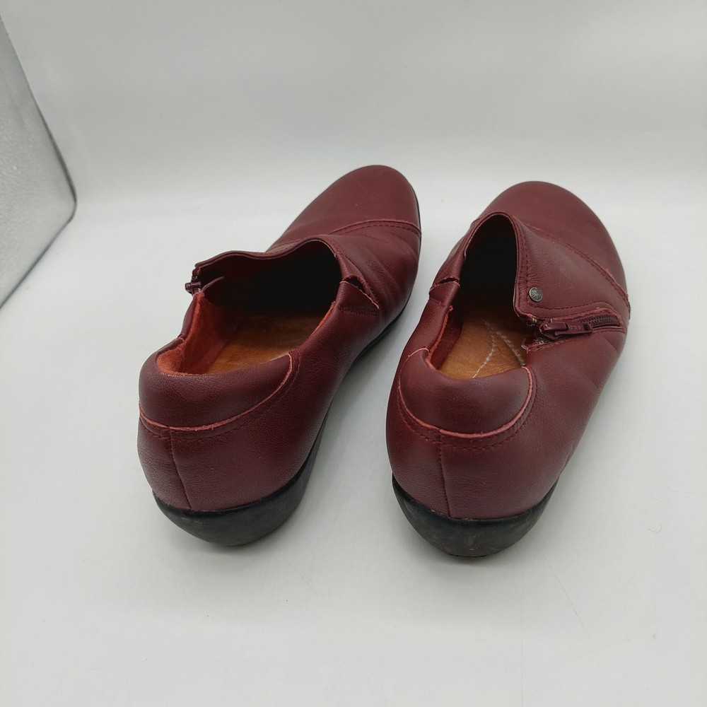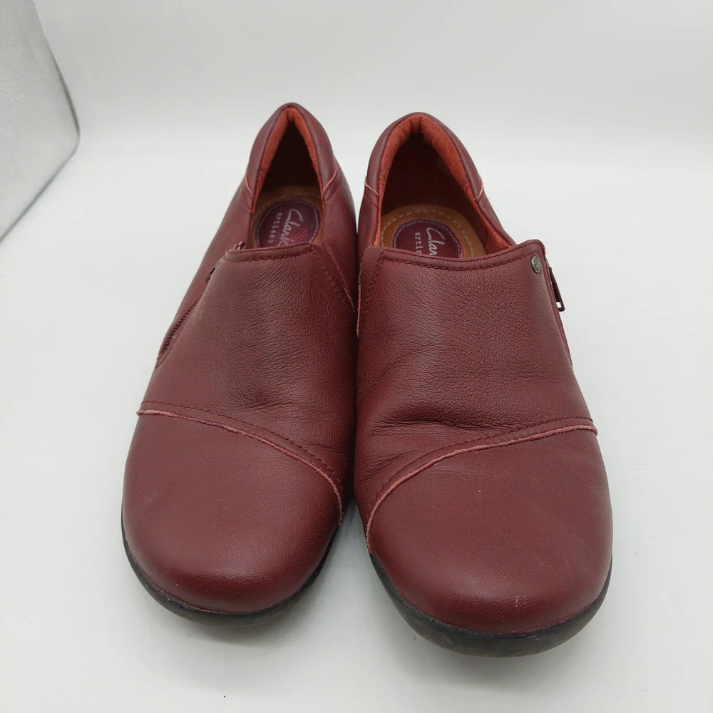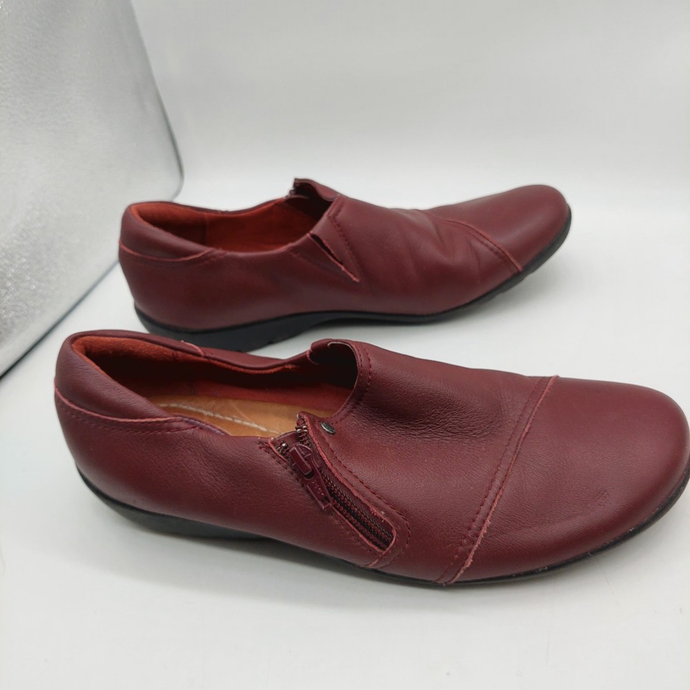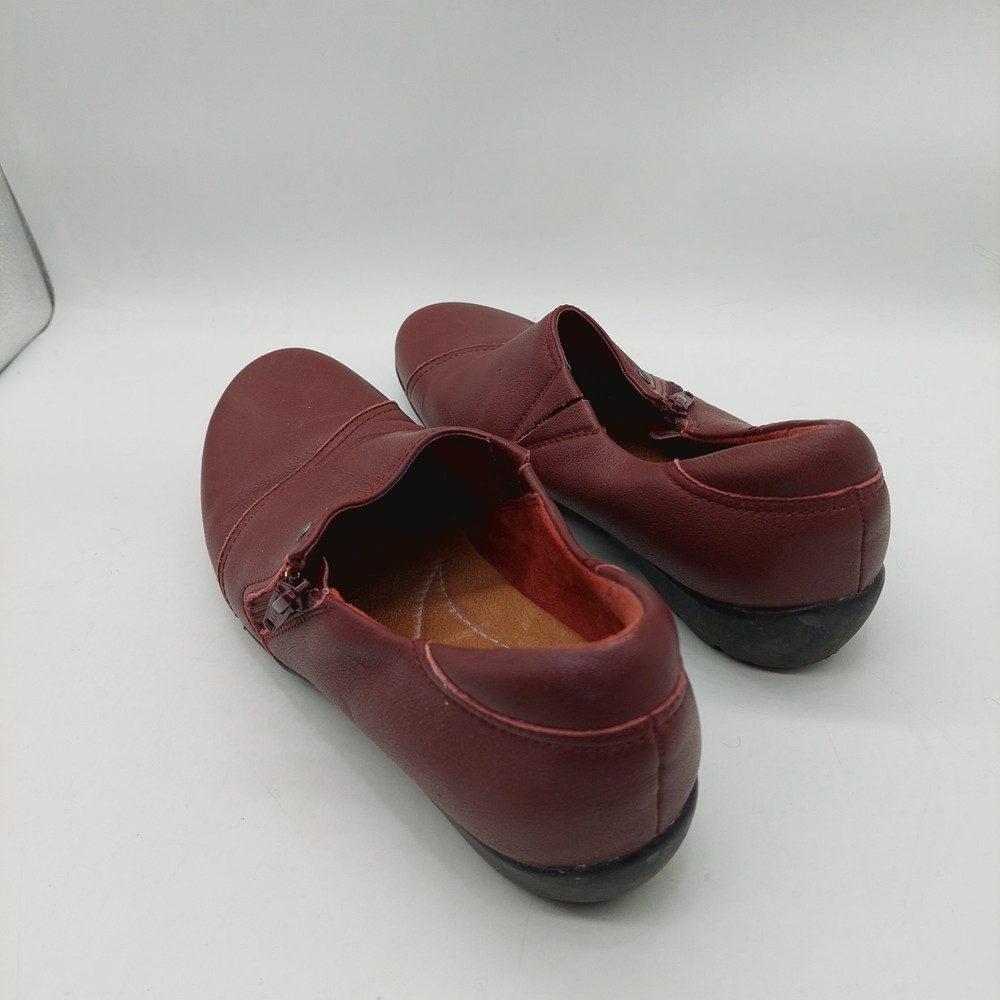 Clarks Artisan Burgundy Loafers Slip On Shoes Flats Zipper Womens Size 10