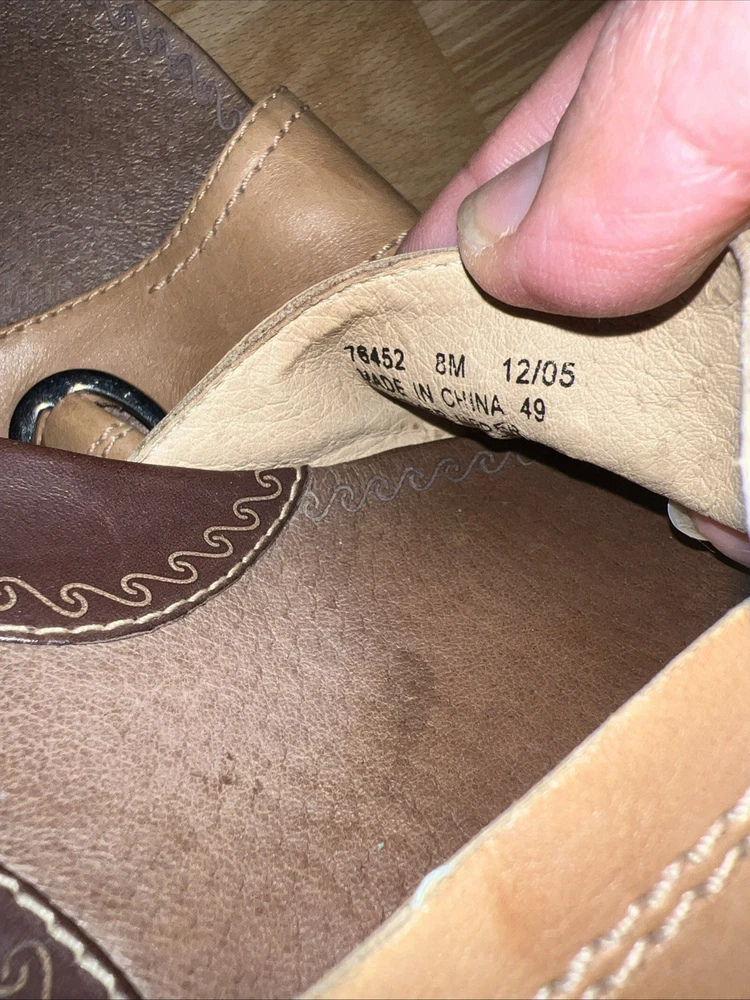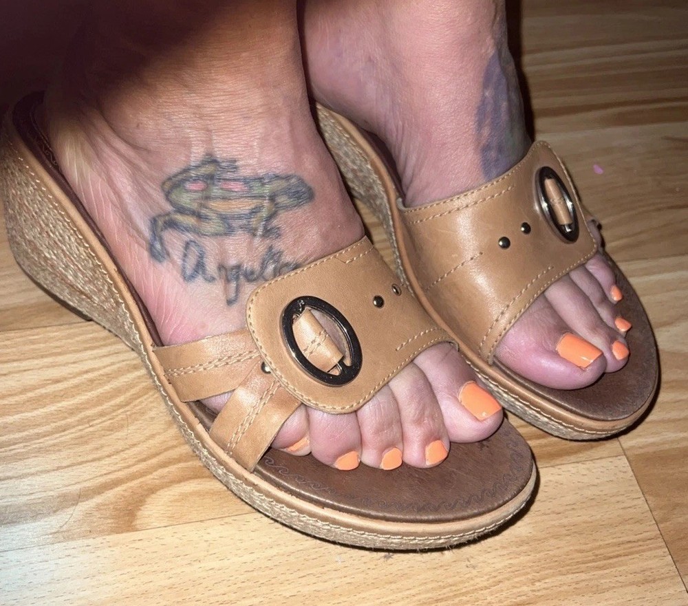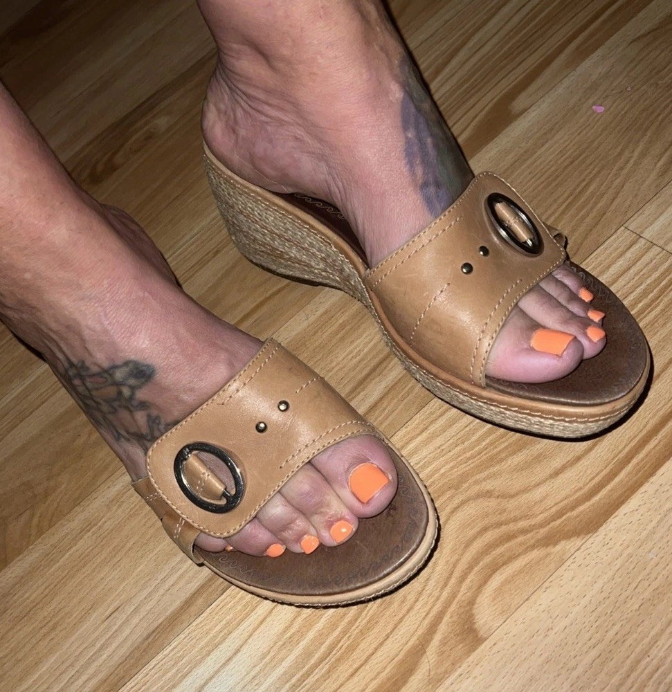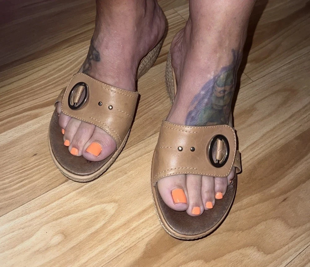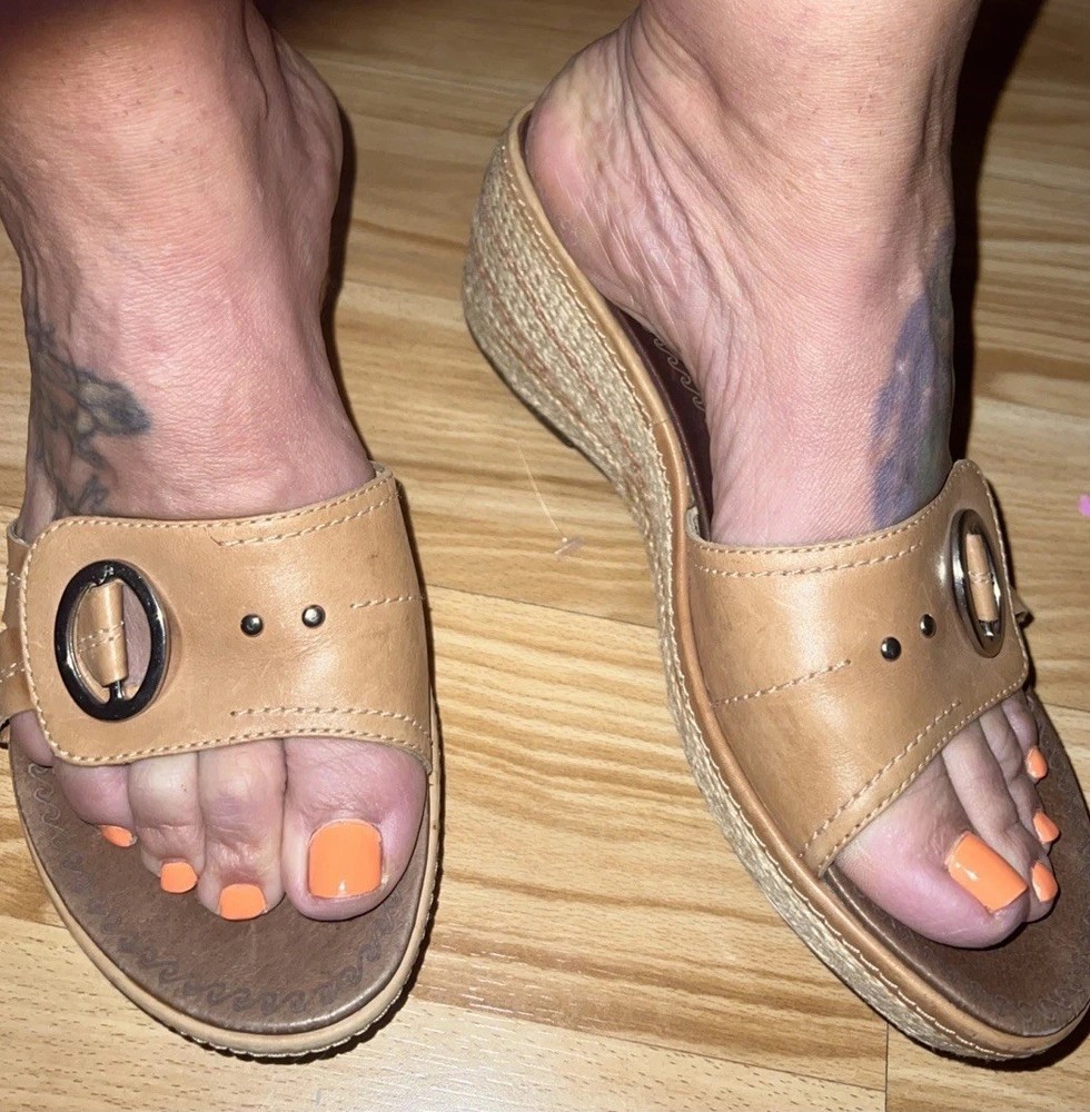 These Clarks Artisan Slip On Leather Wrap Around Rope Wedge Sandals in Women's Size 8 are perfect for casual occasions during the summer and spring seasons. With a solid beige color, leather lining and upper material, these sandals feature a mid-height wedge heel and a slip-on style for ease and comfort. The leather wrap around rope detail adds a unique and stylish touch to the design, making them a versatile and fashionable choice for any woman's wardrobe. Preowned. In very good used condition. Please see pictures thoroughly and up close. Thank you for looking!