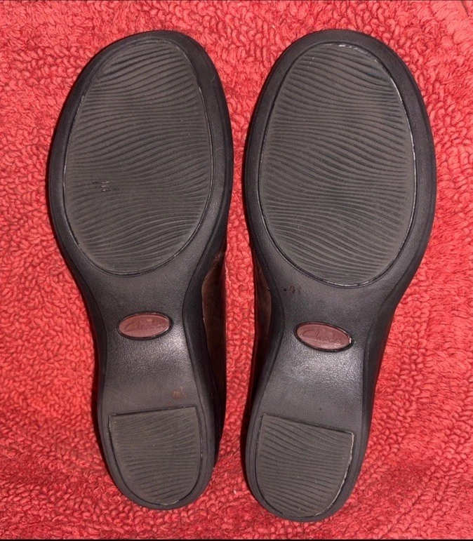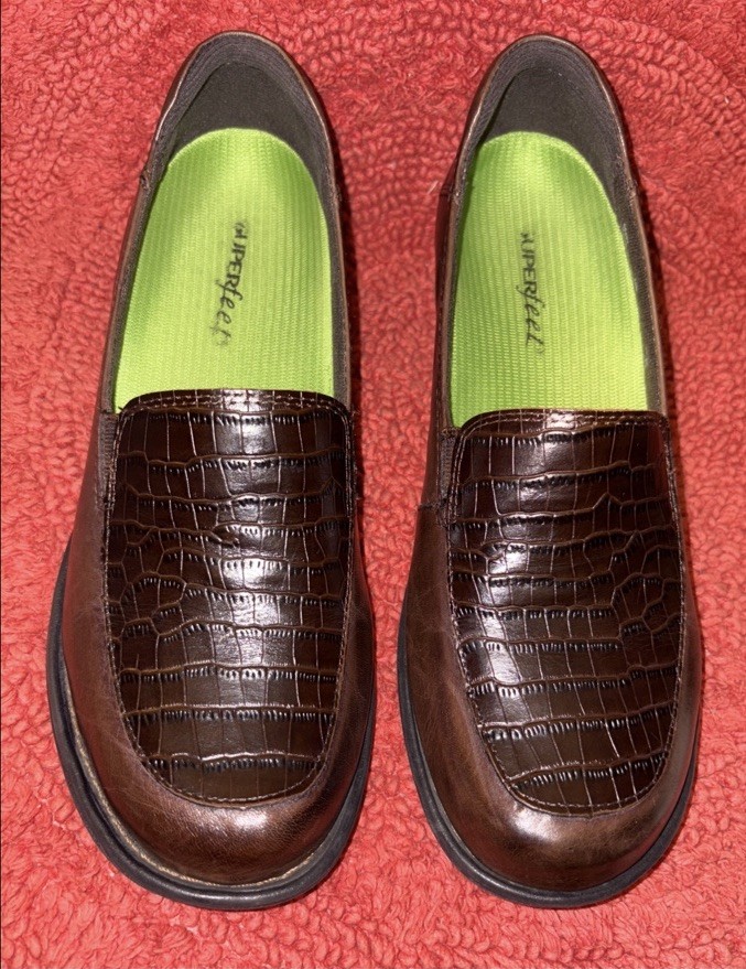The loafers in the pictures are the exact pair the buyer will receive. They are in excellent preowned condition as you will see in pictures. Product Description: Clarks Artisan Womens Brown Leather Alligator Print Vamp Slip On Loafers Sz 10 M Product Information: Clarks Artisan women's brown leather loafers with a unique alligator print vamp design is a classy design for all day wear. These comfortable slip-on loafers feature a round toe shape and a cushioned Superfeet insole for added comfort. With a rubber outsole for slip resistance, they are suitable for various occasions including travel, parties, casual wear, work, and business meetings. Made with high-quality leather and Superfeet insoles, these size 10 M loafers are a stylish and versatile addition to any woman's shoe collection.