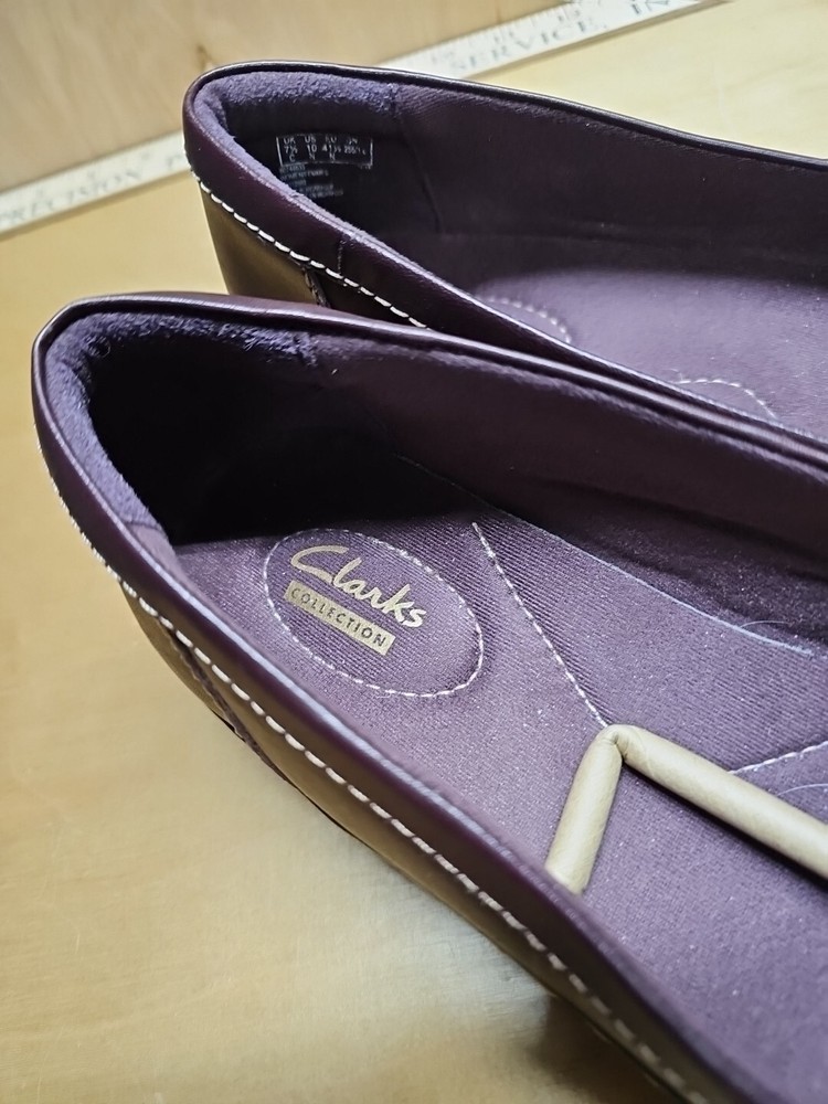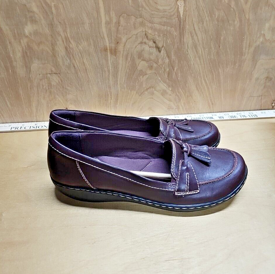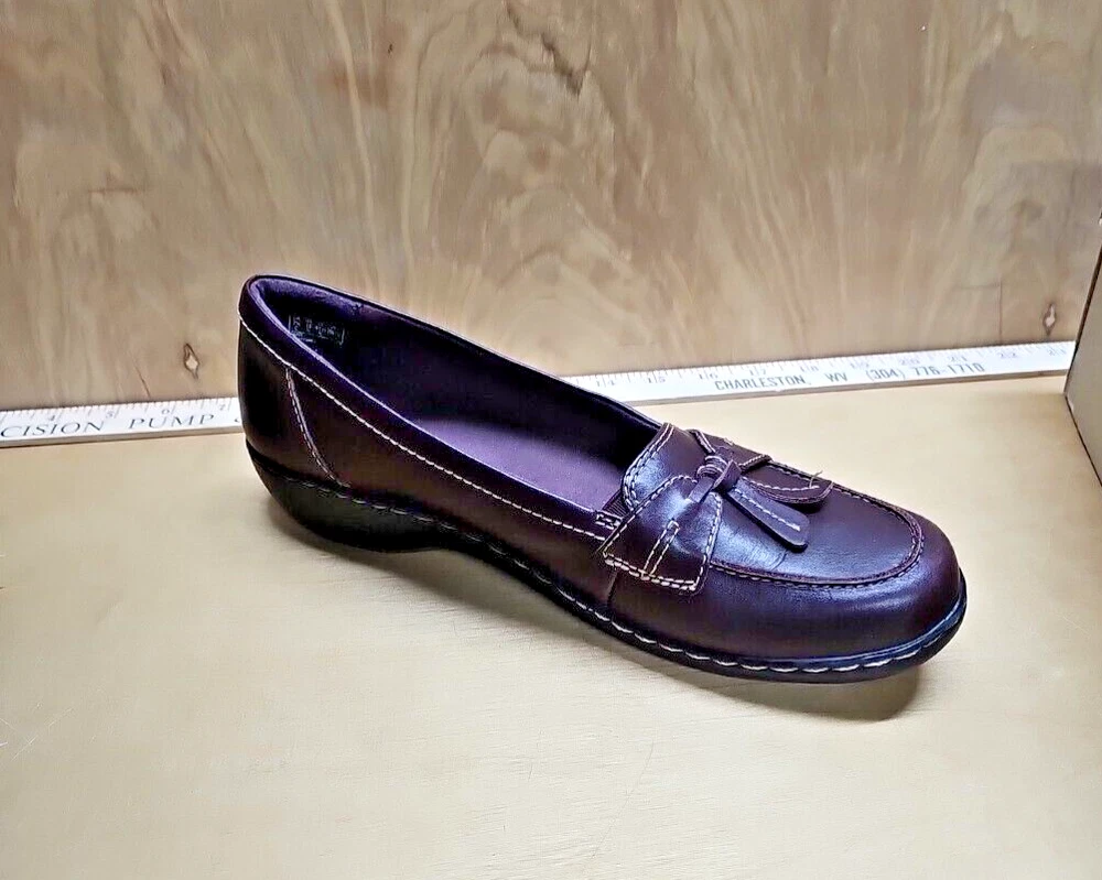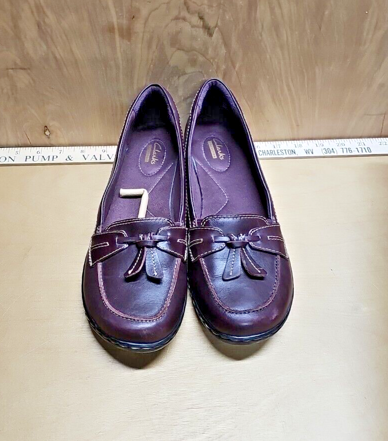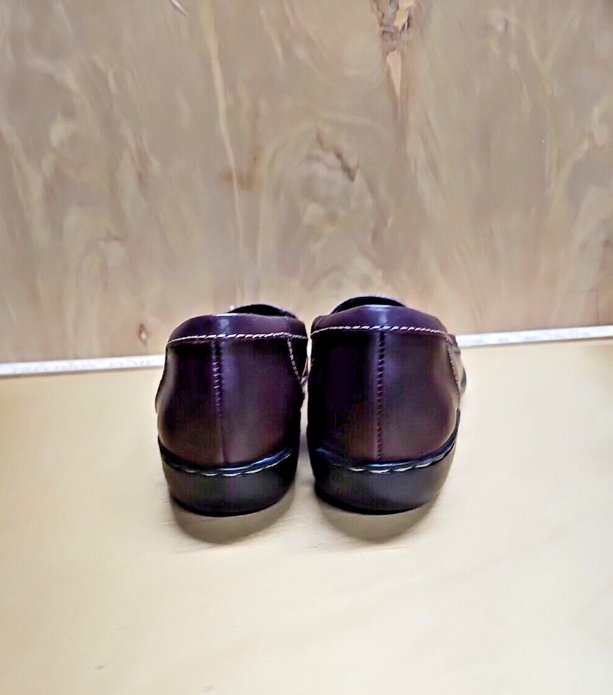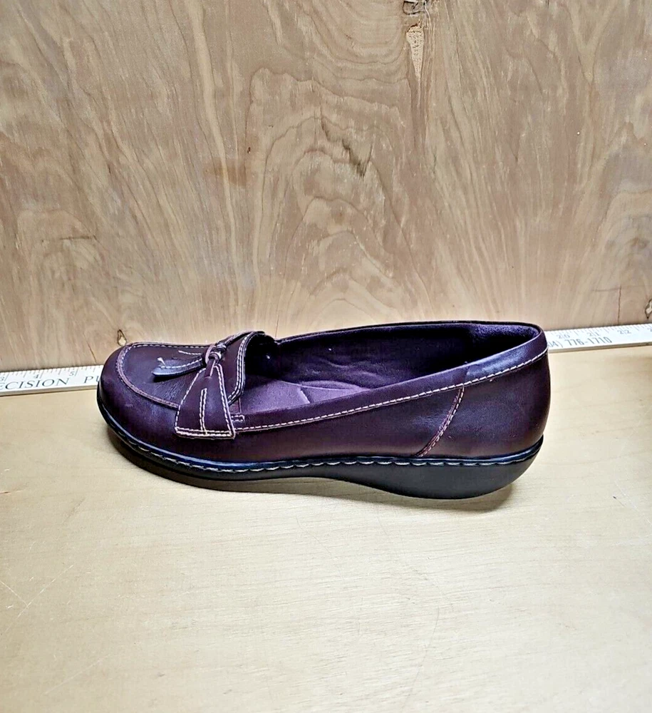 Elevate your shoe game with these stylish Clarks Ashland Bubble women's slip-on leather loafers. The rich burgundy color and solid pattern make them suitable for both casual and business occasions. These loafers feature a closed toe, slip-on closure, and comfortable rubber outsole perfect for walking. Crafted from high-quality leather with a cushioned and breathable foam insole, these shoes provide both style and comfort. The Clarks Ashland Bubble loafers come in UK size 8, US size 10, and EU size 40-41. With their timeless design and durable construction, they are the perfect addition to any shoe collection.