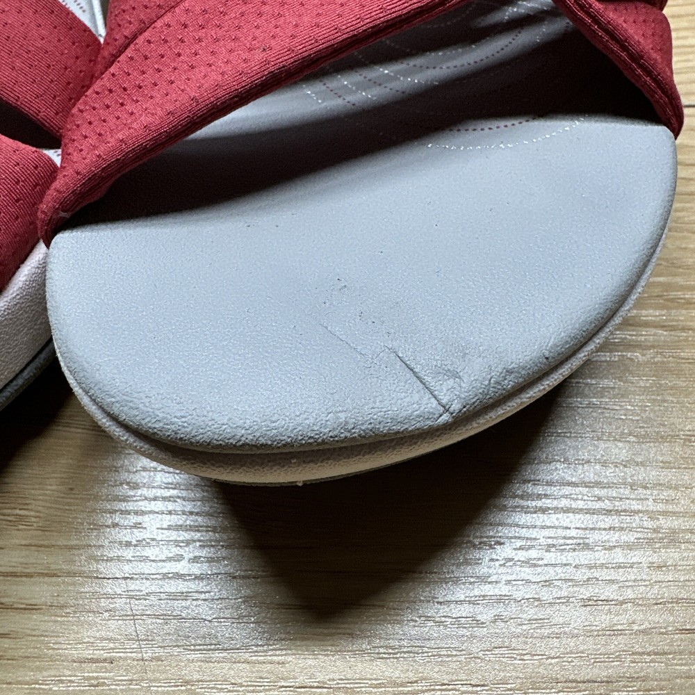 Clarks Cloudsteppers Womens 9 Strappy Sandals Red White Cushion Wedge Strap Preowned
