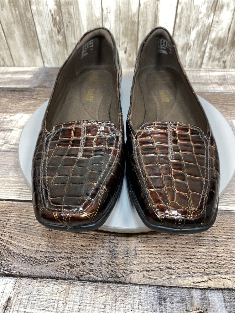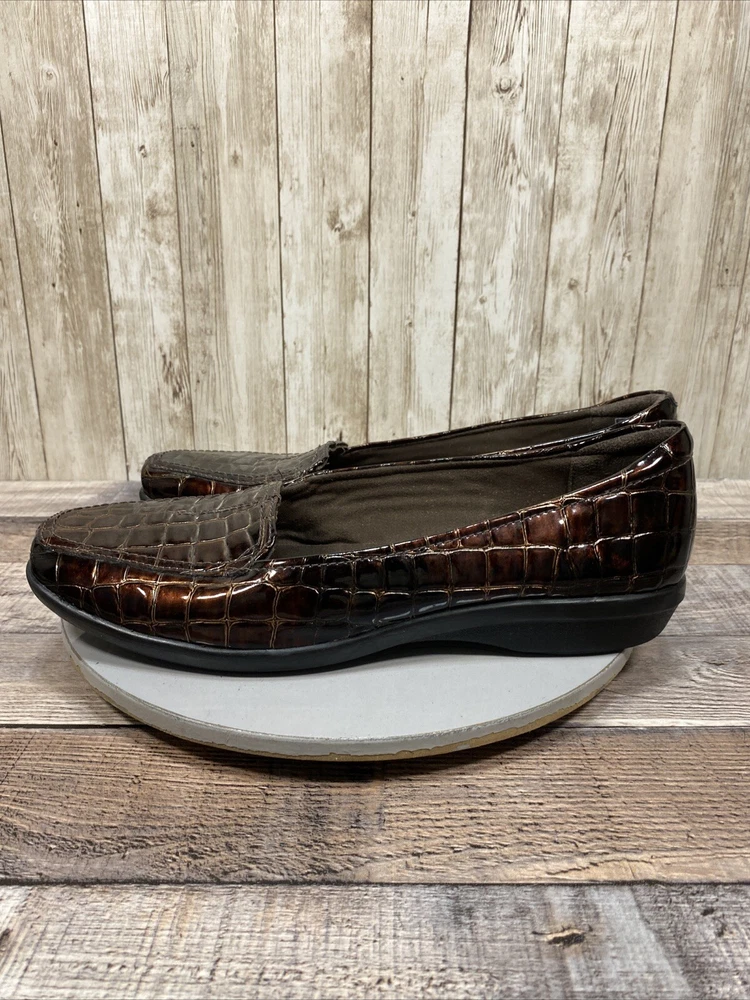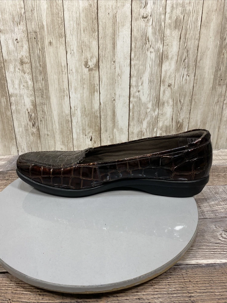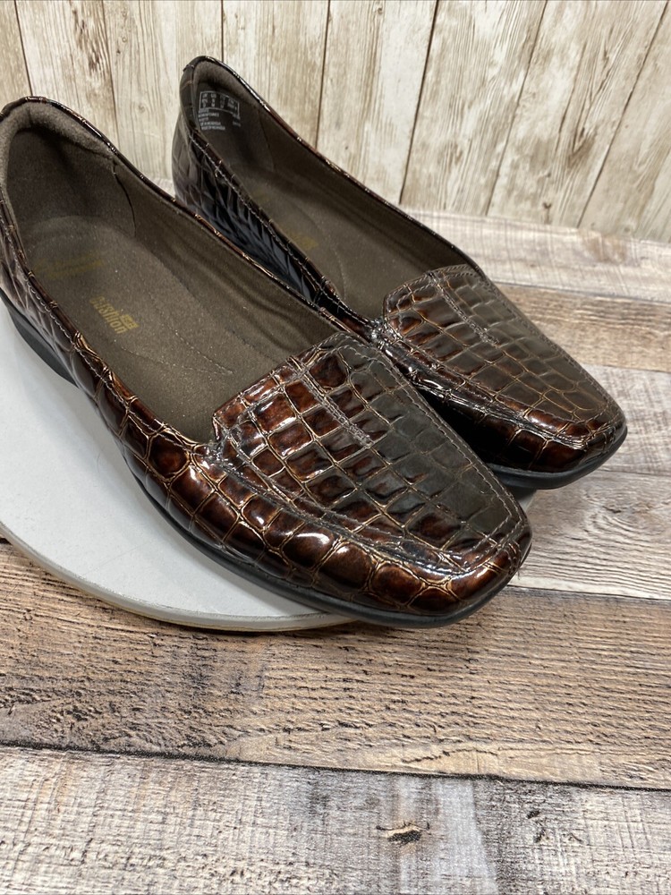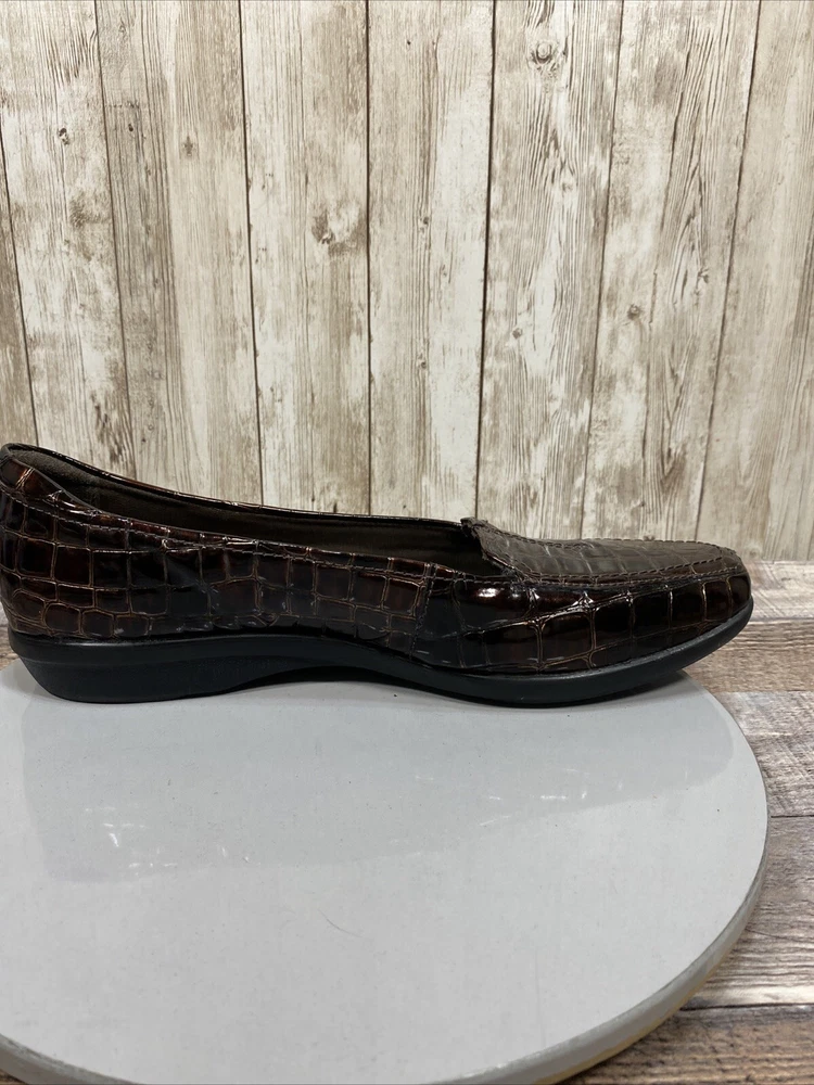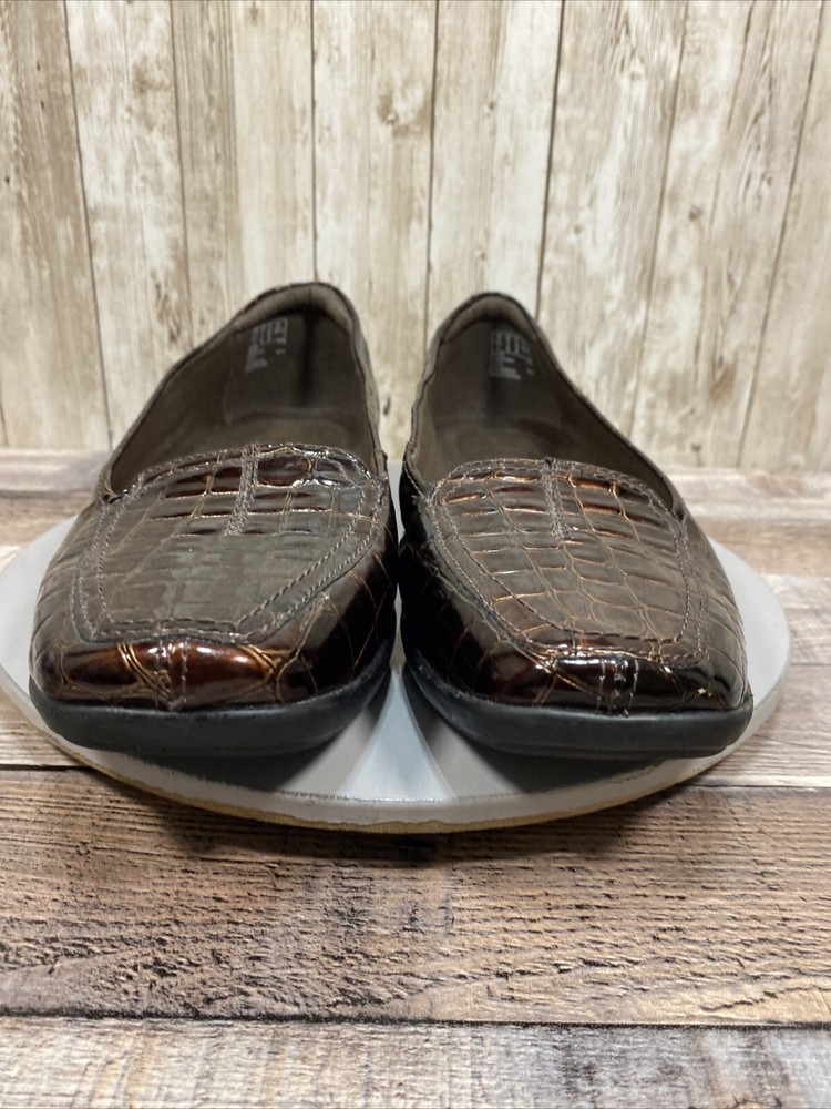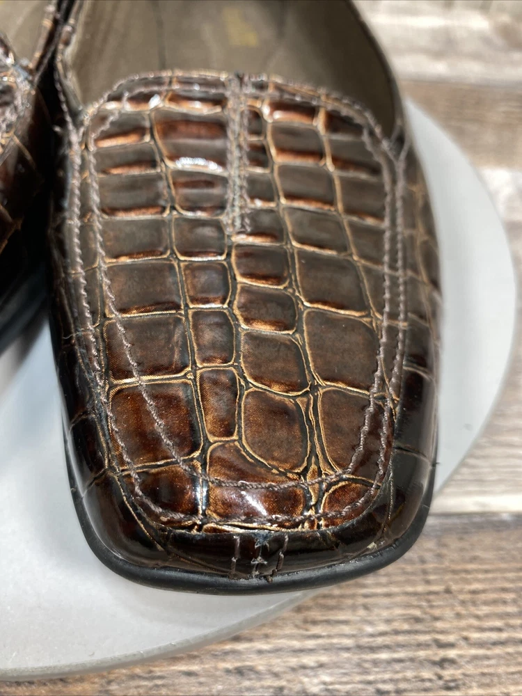 Naturalizer Womens Brown Croc Embossed Tassel Loafers Size 7 M Slip On