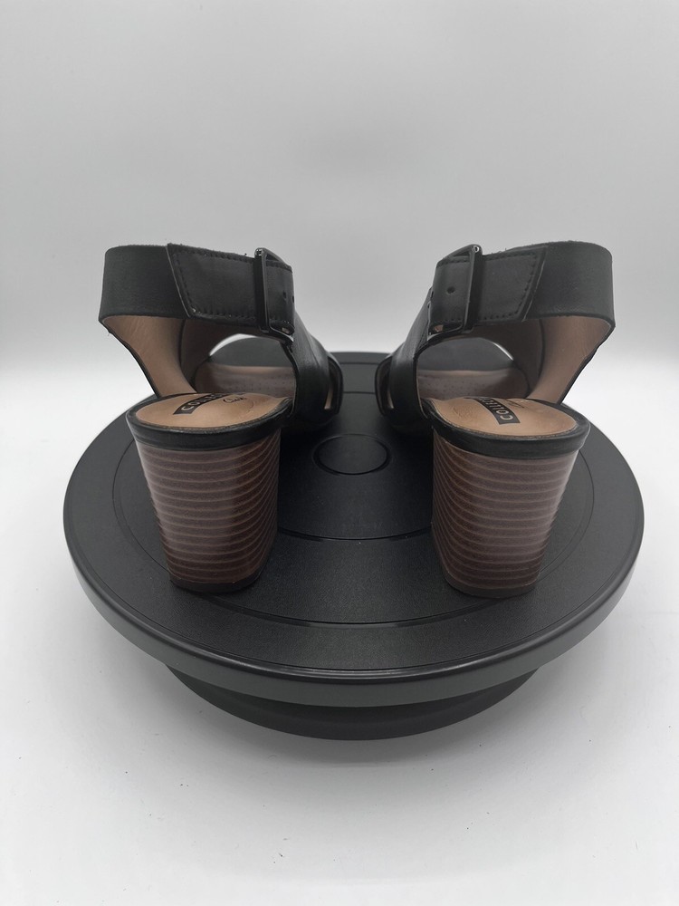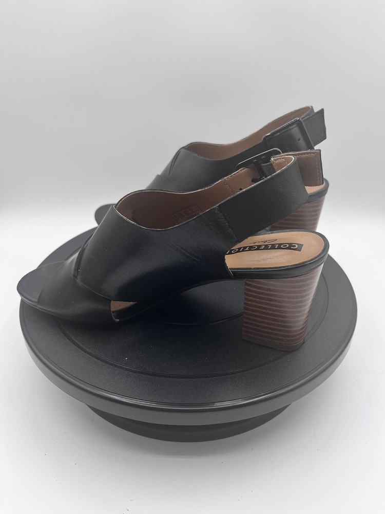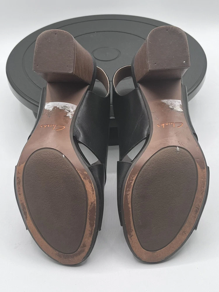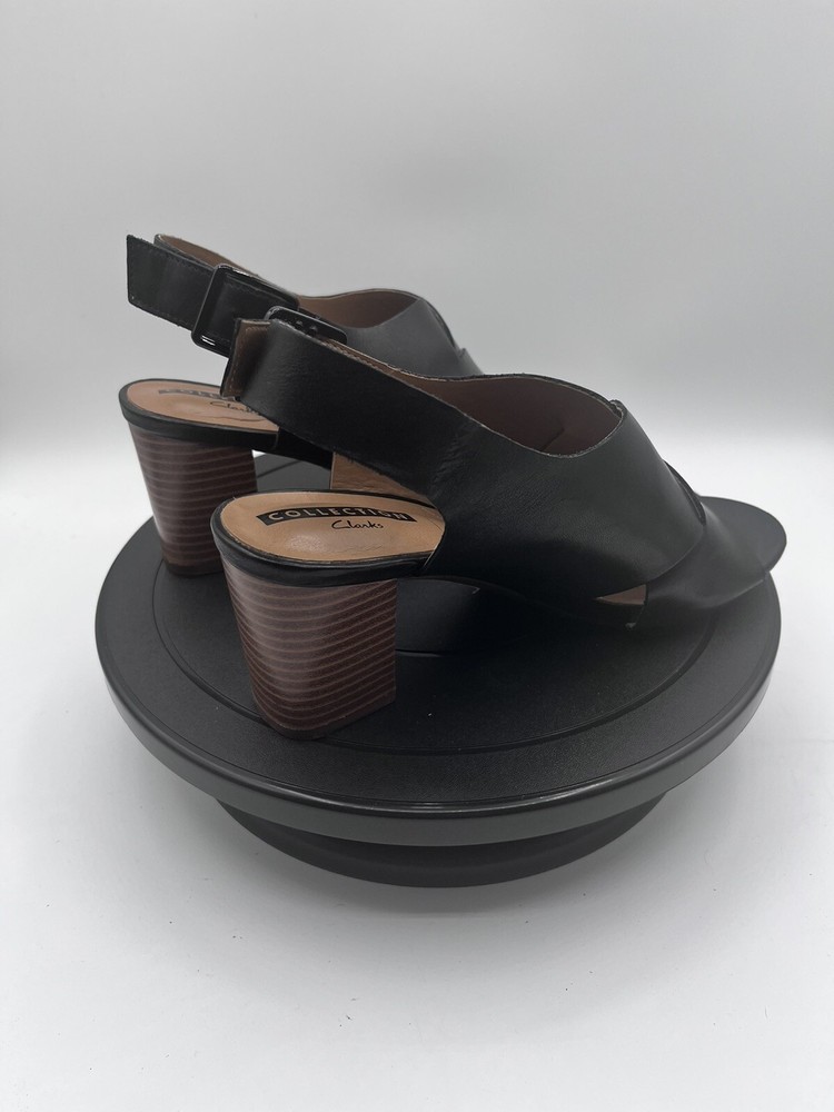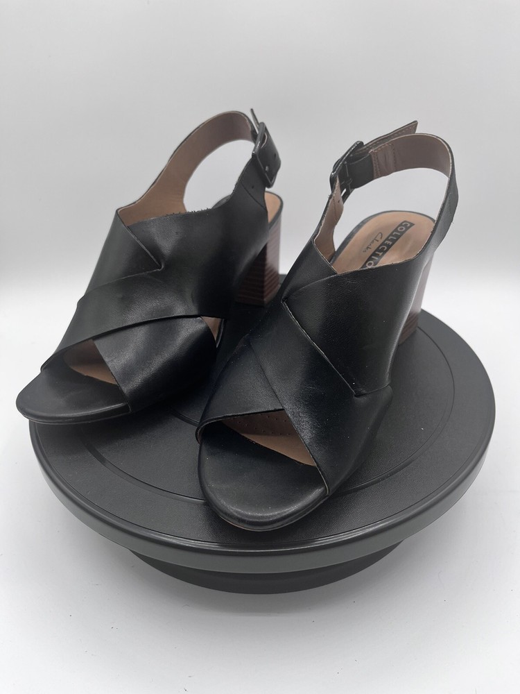 Clarks Deva Janie Black Leather Peep Toe Slingback Heel 6M
