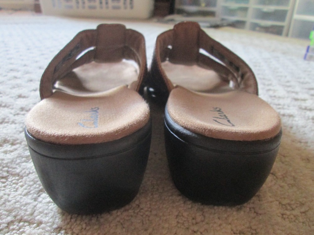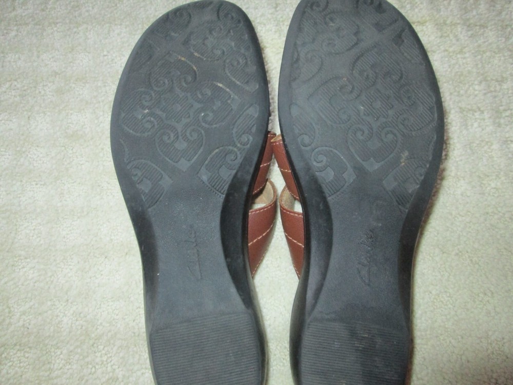 Features:Breathable, ComfortStyle:StrappyLining Material:FabricColor:BrownOccasion:CasualModel:Open ToeCountry of Origin:ChinaUPC:Does not applyUS Shoe Size:8Mgtin13:Does not applyHeel Style:BlockDepartment:WomenSeller Notes:“Very good/ barely worn and come as pictured Only MINOR sole wear”Shoe Width:MAccents:StrapInsole Material:FabricBrand:ClarksCushioning Level:MinimalEU Shoe Size:unknownOutsole Material:RubberType:SandalHeel Height:Low (1-1.9 in)Closure:Slip OnPattern:SolidUpper Material:LeatherSeason:Fall, Spring, Summer
