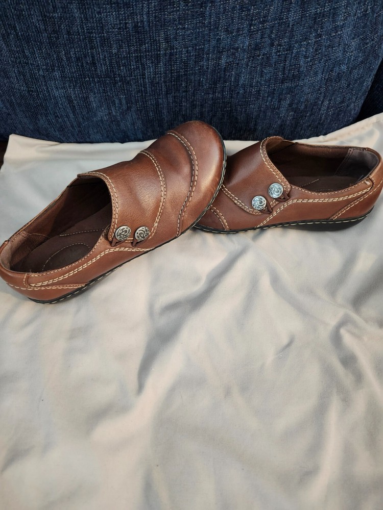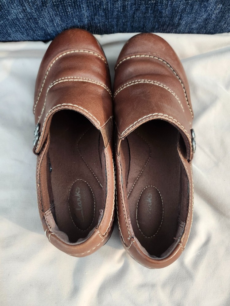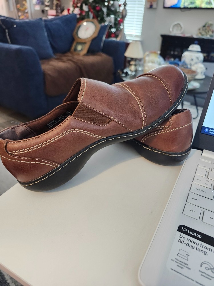CLARKS BENDABLES ASHLAND ALPINE SLIP ON BROWN LEATHER SHOES SZ.6.5W, VERY NICE