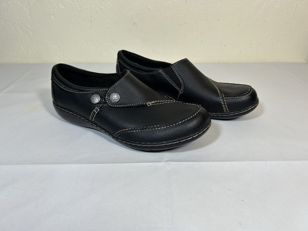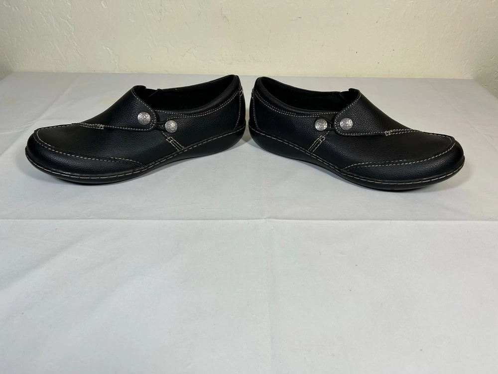 Clarks Womens Ashland Lane Q Black Loafers Shoes Size 10 Medium.