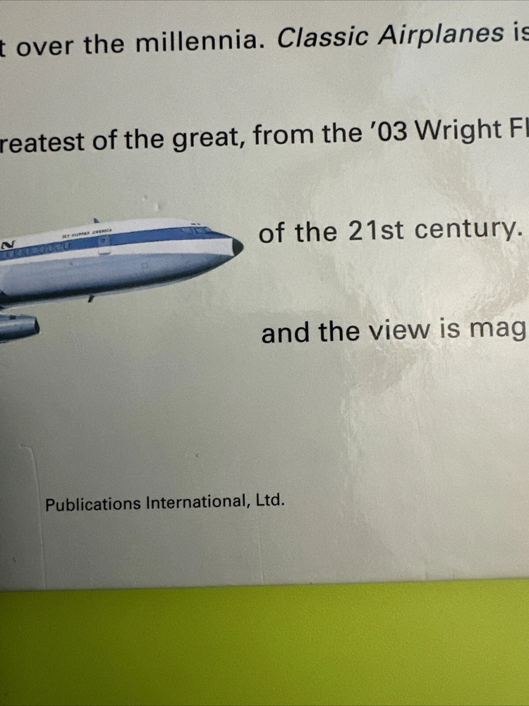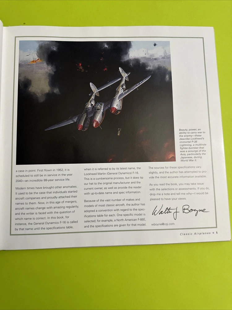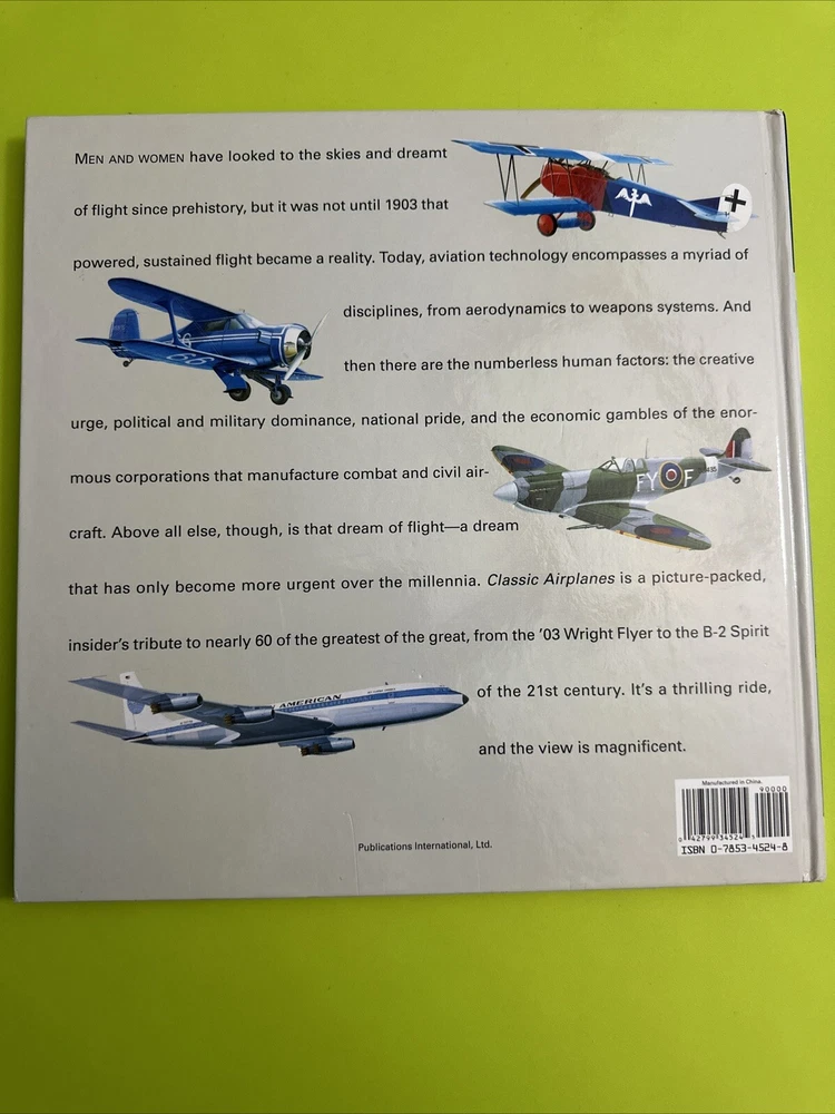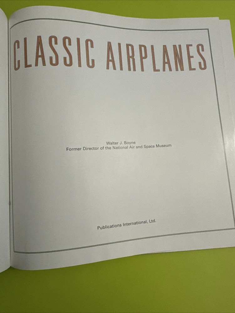 This hardcover book titled "Classic Airplanes" by Walter J. Boyne is a must-have for any aviation enthusiast. Filled with 144 pages of beautiful illustrations and captivating stories, this picture book is perfect for young adults, children aged 4-8, those aged 9-12, and even adults. The book covers a wide range of topics in the field of aviation, serving as a great addition to any collection. The book is in great shape, with no signs of wear and tear. It is a vintage item, published in 2005 by Publications International, The Limited. The book is in English and has a length of 12 inches, a width of 12 inches, and weighs 48.1 ounces. It is a non-fiction narrative type and is categorized under "Books & Magazines" and "Books".