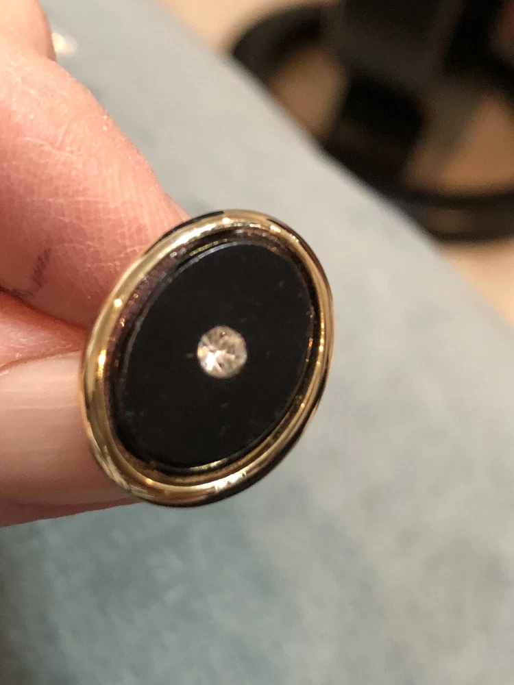 These preowned cuff links are classic ovals w/sparkling chips of either CZ’s or diamonds. The tie tack can be used as a lapel pin.