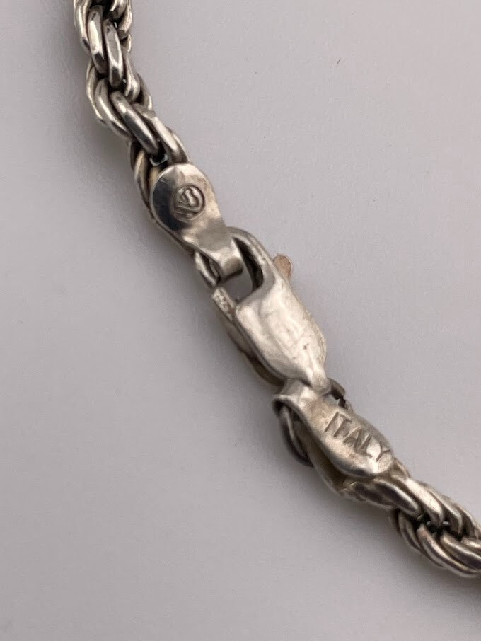ITALY 925 STERLING SILVER 3MM ROPE CHAIN ANKLET BRACELET 9.25" CLASSIC BOHO 923 7.8G SURFER ****************************** Thank you for your interest in our jewelry. We?d like to introduce ourselves. We are just a retired couple who love matching our customers with great jewelry. We?re not professional jewelers. To have the best shopping experience we like to recommend the following: Please measure your hand, wrist, finger or neck to ensure the best fit. We can use your measurements to help with sizing. Please ask all the questions you want. We know some stuff and, if we don?t, we?ll do the research. We like to learn too. More Stuff: If an item is described as ?gold over 925 sterling silver? this means it is gold vermeil. Vermeil is the process by which a layer of gold (usually 14k or 18k) is bonded to sterling silver. We only clean with gentle soap and warm water to avoid damage. The items we sell may be new or pre-owned and may have normal wear, slight damage, and/or tarnish. We make every effort to ensure the items we sell are as described. This includes testing to confirm metal purity if the item isn?t marked, and testing for gemstone identity. We try to put measurements in the jewelry description and include a photo of each piece with a U.S. quarter (25mm).