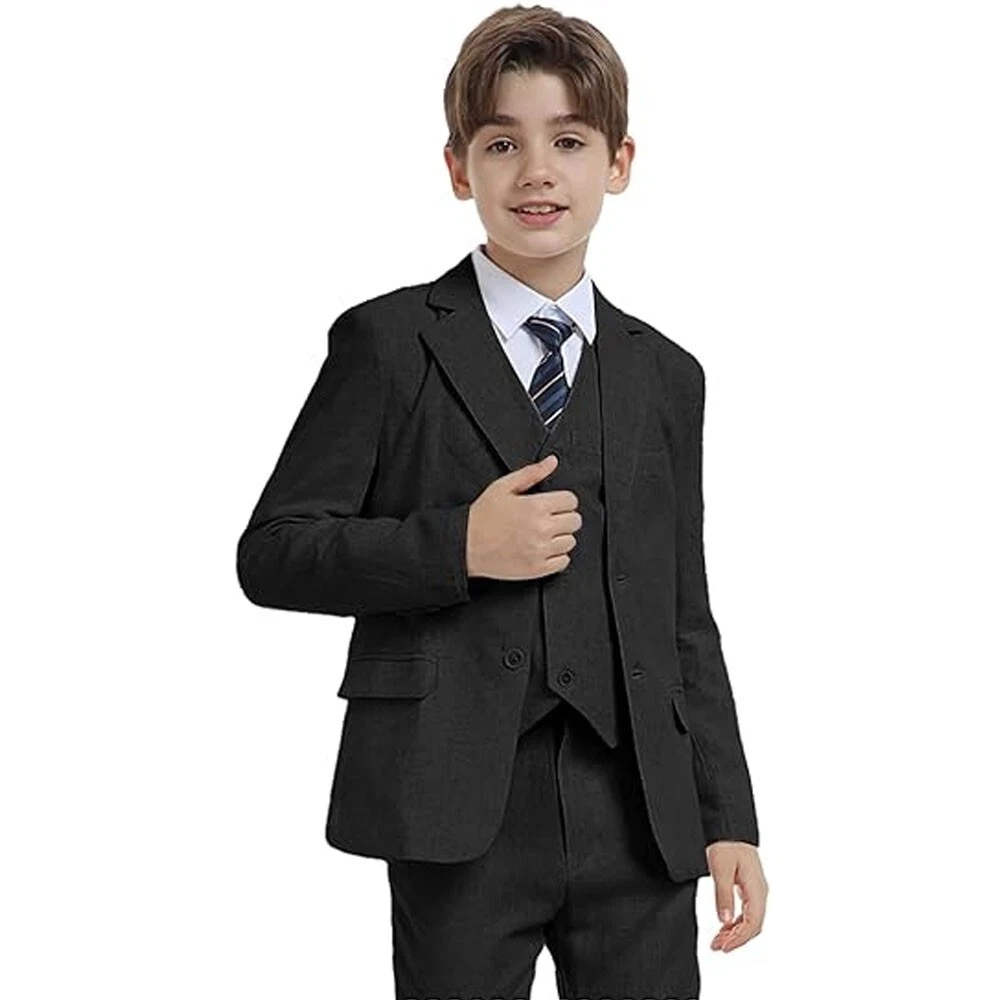 Suit for Boys Kids Suits Slim Fit Tuxedo Blazer Vest Pants Shirt and Tie Blac