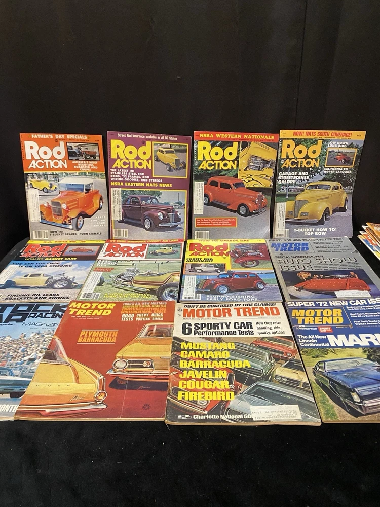 This collection of 59 vintage classic car magazines is a must-have for any automobile enthusiast. Featuring iconic titles such as Hot Rod, Motor Trend, and Rod Action, these magazines offer a glimpse into the golden era of automotive history. Covering the 50s, 60s, 70s, 80s, and 90s, these magazines provide a wealth of information on classic cars, including articles, reviews, and advertisements. The magazines are proudly made in the United States and are a great addition to any collector's library. Whether you're a fan of muscle cars or classic sports cars, these magazines have something for everyone. Don't miss out on this unique opportunity to own a piece of automotive history. Please note that some of the magazines may have bent corners/small tears in pages one of the pick up magazines has a loose cover