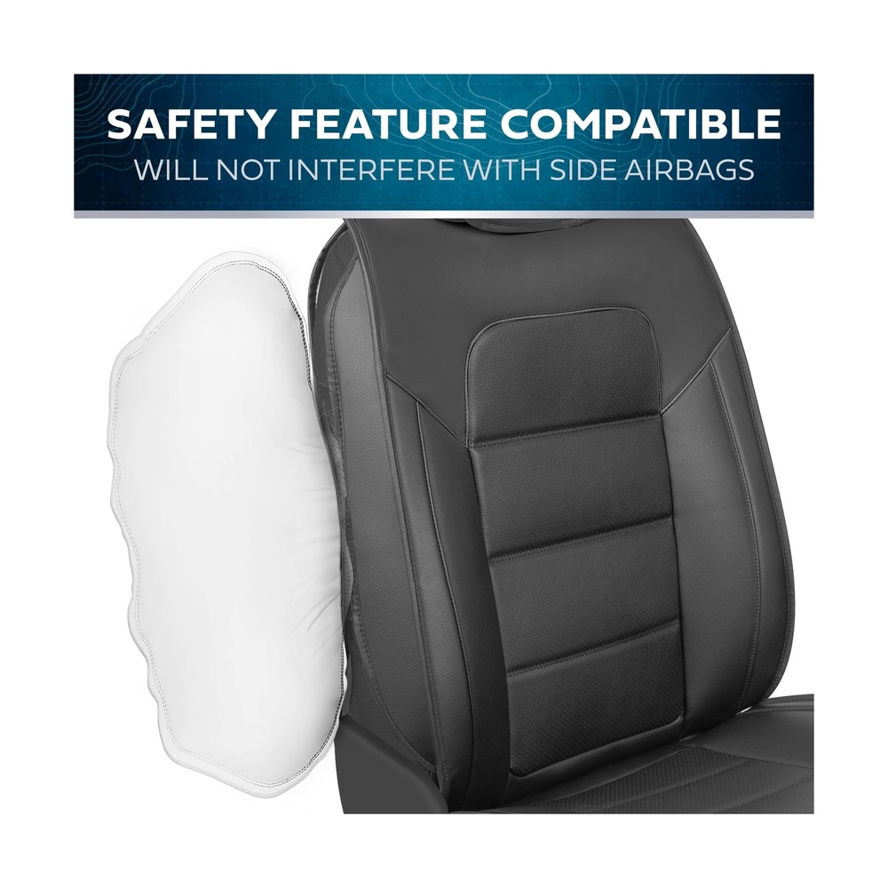 Classic Edition Seat Covers, Premium Faux Leather Seat Covers for Cars Trucks Vans SUV, Semi Custom Fit Car Seat Covers Front Seats Only, Automotive Interior Cover - Black Description Introducing the MotorBox Classic Edition Car Seat Covers – the ultimate upgrade for your car's interior. These high-end seat covers are crafted with premium faux leather, offering a luxurious look and feel. The elegant perforated design adds a touch of sophistication, while also providing a snug fit and optimal comfort. With MotorBox Car Seat Covers, you can protect your car seats from spills, stains, dirt, and everyday wear, extending their lifespan and maintaining their original condition. The easy installation process allows for a hassle-free transformation of your car's interior, and the cushioned design ensures a comfortable driving experience. Suitable for a variety of vehicles, including trucks, SUVs, and cars, these seat covers are not only stylish but also practical, making them a must-have automotive accessory. Elevate your driving experience with MotorBox Prestige Edition Car Seat Covers. Features: Premium Quality: MotorBox Classic Edition Car Seat Covers are crafted with high-end materials to ensure long-lasting durability and provide a luxurious look and feel. Made with faux leather, these seat covers offer a stylish upgrade for your car's interior. Classic Pattern: Thick, Luxurious PU Leather with Perforated Texture. The meticulous stitching and design not only enhances the visual appeal but also ensures a snug fit on your seats, providing optimal comfort and support. Easy Installation: Installing these seat covers is a breeze. The two front covers are specifically designed to fit most car models, making them suitable for a wide range of vehicles, including trucks, SUVs, and cars. Simply slip them over your seats, secure the straps, and enjoy the instant transformation of your car's interior. Comfortable and Practical: The cushioned design of MotorBox Car Seat Covers provides exceptional comfort during long drives, ensuring a pleasant experience for both drivers and passengers. Additionally, these seat covers are easy to clean and maintain, making them a practical choice for busy individuals who want to keep their car's interior in top condition. Product Details: Fit Type: Universal Fit Brand: MotorBox Color: Classic Black UPC Manufacturer: BDK Automotive Fit Type: Universal Fit Manufacturer: BDK Brand: MotorBox Model: Classic Edition Item Weight: 8 pounds Product Dimensions: 50.39 x 22.83 x 0.79 inches Country of Origin: China Item model number: MBOS-510 Manufacturer Part Number: MBOS510 Date First Available: October 3, 2023 Delivery We Do Not Ship Outside of the Continental US. Return Policy All items qualify for returns within 30 days of receipt. Buyer is responsible for return shipping on any item that is not damaged. Feedback We take our reputation seriously, we buy and sell online, so we understand the value of trust. If you are unsatisfied with your order, please contact us and we will work with you to resolve it to your satisfaction.