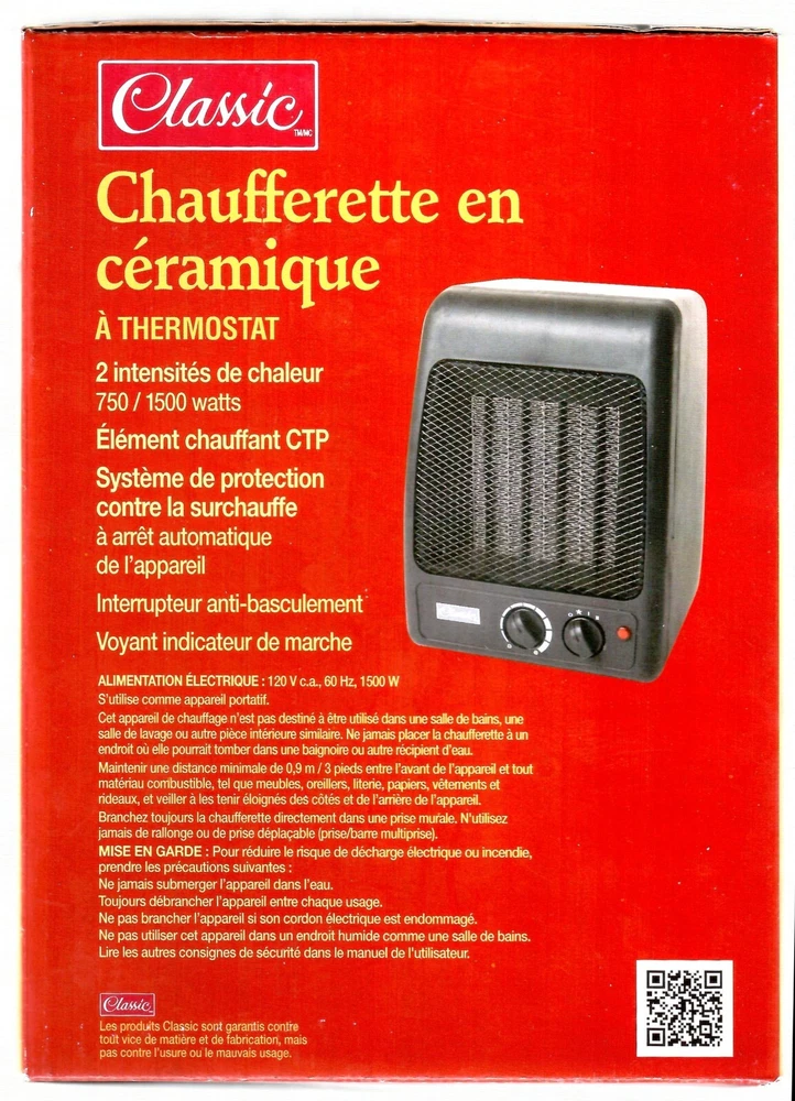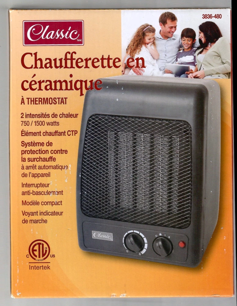 Classic Ceramic Home Heaater with Thermostat 2 Heat Settings 750/1500 Watts PTC Heating Element Thermal cut-off Overheat protection system Tip Over Switch Power Indicator Light Compact Design About: Height 8" (20cm) Width 6" (15cm) Depth 6" (15cm) Weight 45.5oz (1290g) Slightly used in a smoke-free home 4 years ago. Shortly after purchase I moved to a small apartment and recently found them in storage. 'As New Condition' (see photo's/minor wear marks) Unit is in good working order and should give you years of economic service. . SHIPPING Combined shipping is offered on all lots Prices are quoted using "Ebay Calculator" Ship the Carrier of your choice Fees (combined) may vary with Weight, Insurance Coverage, Carrier and Location Please provide Postal Code for quote You can always cancel the transaction if you don't like the price. Insured for loss/damage, covered up to $100 Extra Coverage is available shipping to Canada and USA Canada Post Expedited Service Each Additional lot(s) Will Combine Shipping normaly add $5.00 each 3 day limit Orders over $300 signature required Have a look at my other STUFF https://www.ebay.ca/sch/opportunityshop/m.html?item=167260671171&rt=nc&_trksid=p4429486.m3561.l170197