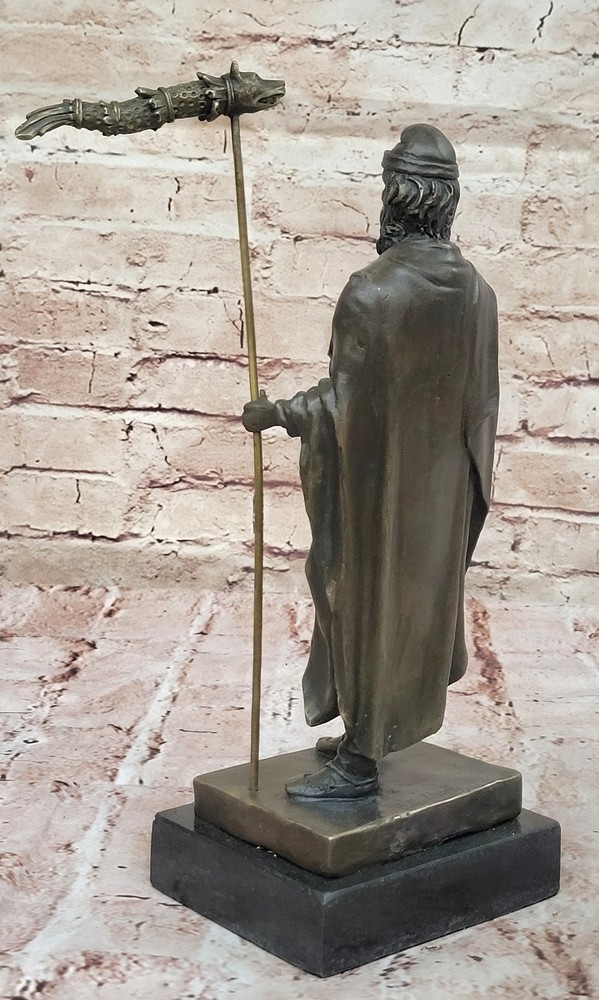 Most Classic and well known versions of Greek mythology, Cronus or Kronos Gift Most Classic and well known versions of Greek mythology, Cronus or Kronos Gift Condition : This sculpture is in perfect condition Bronze Dimensions with Marble Base: Height 11.5" X Width 6 1/2" Marble Dimensions:4 1/2" X 4" Height without base10" Weight:7 LBS Inventory:17YDZ0023871 Greek God Saturn Bronze Sculpture: A Mythological Masterpiece This extraordinary bronze sculpture captures the essence of the Greek God Saturn, also known as Cronus, in breathtaking detail. Saturn is depicted holding his symbolic scythe, representing his dominion over time and harvest. The artist has masterfully crafted every aspect of the figure, from the strong, defined muscles to the intricate folds of his attire. This mythological figure stands tall, exuding power, wisdom, and a timeless presence that captivates any viewer. Lost-Wax Casting: A Timeless Technique This sculpture is a testament to the enduring art of lost-wax casting, a method that has been used for centuries to create intricate bronze works. The attention to detail and craftsmanship in this piece is unparalleled, with the rich brown patina finish enhancing the natural beauty of the bronze. This ancient technique allows for an extraordinary level of detail, preserving the artist’s vision in a way that ensures the sculpture’s longevity and high quality. The two-tone patina highlights the artistry, giving the figure both depth and warmth. An Elegant Addition to Any Collection Mounted on a black marble base, this bronze sculpture is not only a tribute to Greek mythology but also an elegant addition to any art collection. The smooth marble contrasts beautifully with the rough texture of the bronze, giving the piece a sophisticated finish. Signed by artist B.C. Zhang, this sculpture is a work of fine art that bridges classical mythology with modern craftsmanship, making it a must-have for collectors and admirers of fine bronze works. Greek God Saturn Holding Scythe Bronze Sculpture Hot Cast Figurine Figure Video will open in a new window Using the eBay App? Paste link into a browser window: [isdntekvideo] Shipping Terms : Most of our items are shipped via USPS (United States Postal Service) mail or UPS. Most orders are shipped within 24-48 hours of purchase. Please be aware that not all items are available for USPS shipping due to size and weight. We do ship to Hawaii, Alaska, Canada, Puerto Rico, APO/AE, and U.S. Virgin Islands, however, an additional charge may be required. Please contact us before making any purchases in these areas. For Non-USA customers, you may be responsible for all duty, tax, brokerage fees that may be due upon delivery (shipping costs cover freight charges only). We also ship internationally. Please refer to the "Shipping and Handling" chart for the rates for each area. Payment : We accept just about any form of payment. PayPal, Master Card, Visa or American Express credit cards. Money orders, cashiers checks, and even personal or business checks. For governmental institutions, we will also accept a purchase order. Please understand that for personal or business checks we have to wait for the check to clear (usually 7 days) before shipping. Condition : New Detailed Hand Crafted Hot Cast Bronze Satisfaction Guaranteed. This is Stock Photo, Slight Color Variation!! Listing and template services provided by inkFrog