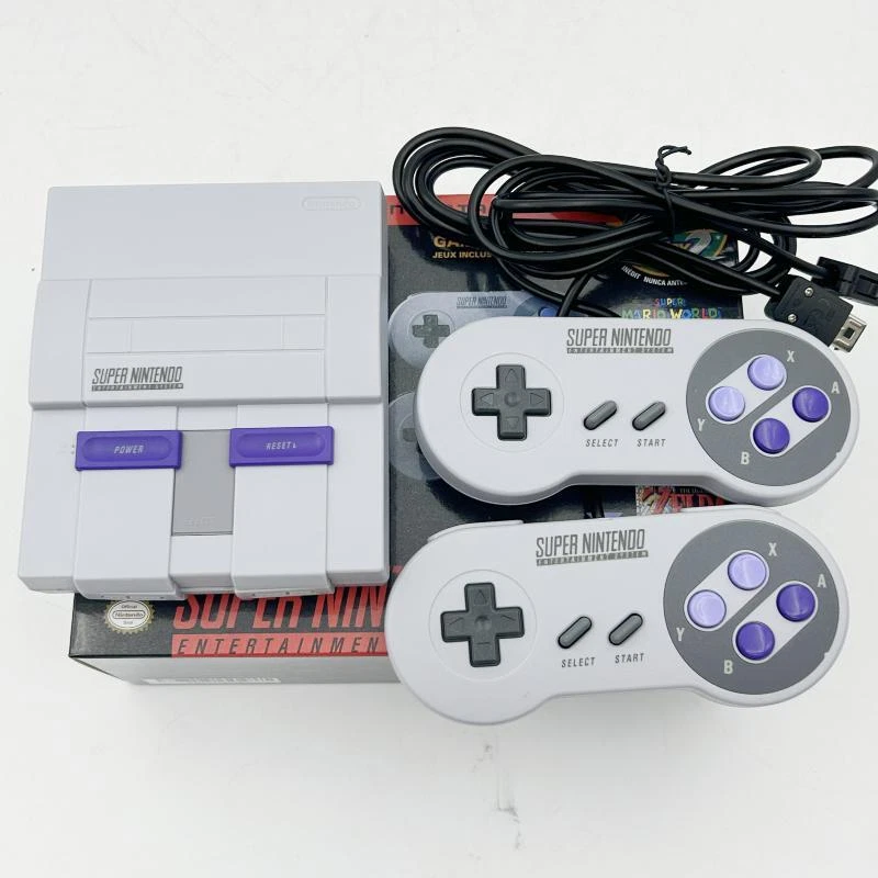Product Description Package including: 1x Console 2x Gamepad Controllers 1x Connection Cable 1x Power Adapter and Cable 1x Manual 21 built-in Games : Contra III The Alien Wars Donkey Kong Country EarthBound Final Fantasy III F-ZERO Kirby's Dream Course Kirby Super Star Mega Man X Secret of Mana Star Fox Street Fighter II Turbo: Hyper Fighting Super Castelvania IV Super Ghouls'n Ghosts Super Mario Kart Super Mario RPG: Legend of Seven Stars Super Mario World Super Metroid Super Punch-Out!! The Legend of Zelda: A Link of the Past Yoshi's Island StarFox 2 Promote communication between parents and children:Can't find topics to communicate with children? retro classic game consoles allow your child to experience growing experiences and happiness, and enhance communication and feelings with children.Let them enjoy the same happiness and fun in their childhood as you! Shipping Contact Us Feedback 1.Handling time: 1 business day and 2 business day on weekend (Orders are not processed on holidays) 2.It usually takes 3-7 business days for the delivery. 3.Please make sure your address on eBay is matched with your shipping address before you pay. 1.If you have any question about the item you received, please contact us to solve the problem. 2.ALL 5 STARS feedback is of importace to us. Please do not leave us any negative or neutral feedbacks before contacting us. 3.We will be active and begin to solve the problem. 1.If you are satisfied with the product you received, please feel free to leave us positive ( + ) feedback. 2.If you are not satisfied, please contact us before leaving any negative feedback or open any case on eBay, thanks. Shipping 1.Handling time: 1 business day and 2 business day on weekend (Orders are not processed on holidays) 2.It usually takes 3-7 business days for the delivery. 3.Please make sure your address on eBay is matched with your shipping address before you pay. Contact Us 1.If you have any question about the item you received, please contact us to solve the problem. 2.ALL 5 STARS feedback is of importace to us. Please do not leave us any negative or neutral feedbacks before contacting us. 3.We will be active and begin to solve the problem. Feedback 1.If you are satisfied with the product you received, please feel free to leave us positive ( + ) feedback. 2.If you are not satisfied, please contact us before leaving any negative feedback or open any case on eBay, thanks. powered by