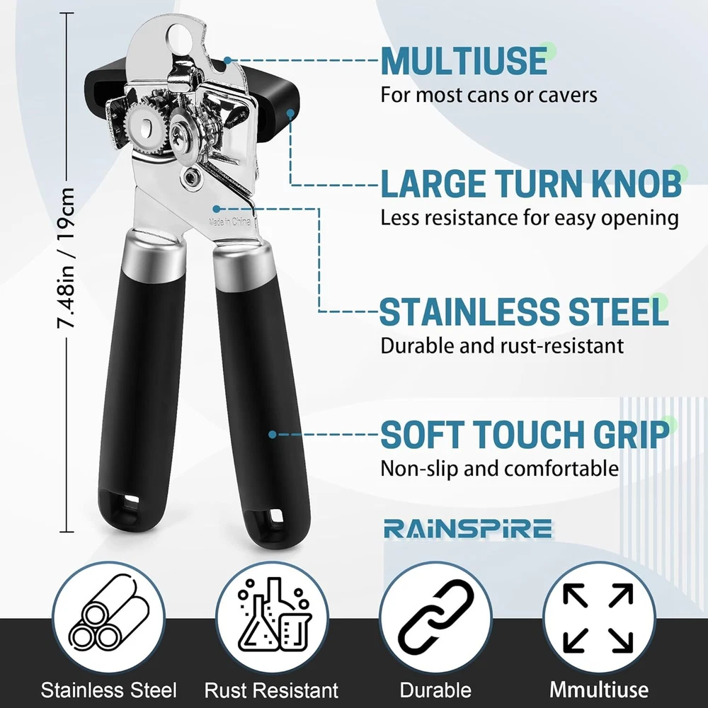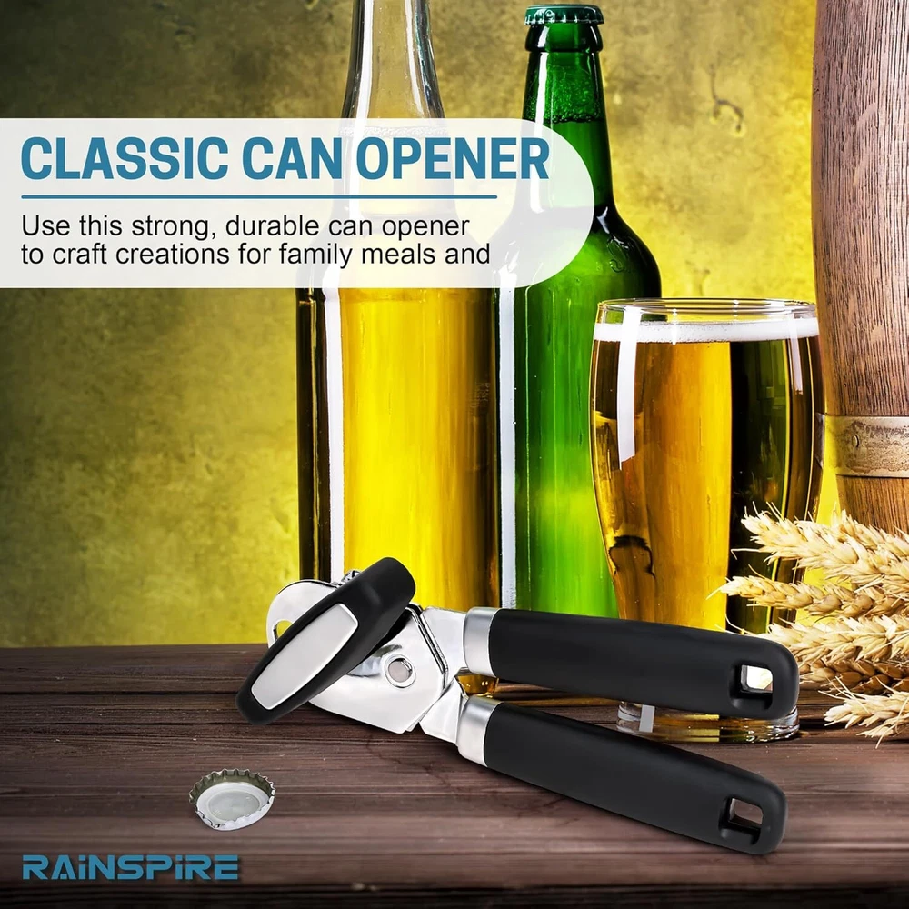 Classic Multifunction Can Opener / Bottle Opener Comfortable & Easy to Use: This manual handheld can opener features large, cushioned handles that provide a non-slip grip , ensuring comfort and ease during use. The oversized knob allows for smooth turning , reducing the effort needed to open cans . Durable & Sharp Cutting Blade: Equipped with a durable , heat-treated, and zinc-coated stainless steel cutting blade , this can opener ensures smooth and precise cutting along the circumference of various cans , including soup, vegetables, fruit , and more. The sharp blade guarantees a smooth edge cut , keeping your hands safe from jagged edges . Multifunctional Design: This heavy-duty can opener also includes a built-in bottle opener , making it a versatile addition to your kitchen. Easily open bottles and cans with one convenient tool. Non-Slip Handles for a Firm Grip: The soft , rubber-coated handles offer a comfortable and secure grip , reducing hand fatigue. Ideal for users of all ages, especially those with limited hand strength . Easy to Clean & Maintain: Hand wash only – simply wash with warm water and mild detergent. Rinse and dry immediately to maintain its quality and longevity. Perfect Kitchen Essential: This manual can opener is a must-have tool for every kitchen, combining efficiency, comfort , and safety in one sleek design. Keywords to Include: Manual can opener Handheld can opener Heavy-duty can opener Smooth edge cut Non-slip grip Soft handle can opener Built-in bottle opener Stainless steel blade Kitchen essential Safe can opener Easy to clean can opener Blade Material Type Stainless Steel Material Stainless Steel Material Type Stainless Steel Color Black Operation Mode Manual Size Large Blade Material Stainless Steel Shipping Fast shipping is very important for us. Our standard US shipping service is FREE. Your order will be shipped within 2-3 business days upon full payment received. Your order will be delivered within 2-3 business days after the handling time. We only ship to the confirmed PayPal address. We reserve the right to cancel any order for any reason at any time. We are not responsible for undeliverable addresses. Returns and payment We offer a 30 days return policy from checkout winning date. We allow only PayPal as payment method FeedBack Your feedback very important to us, after you get your package and you are satisfied with our service please leave us positive feedback If you have any problem with your order / any questions please before leave any type of feedback For any questions, using eBay contact system Please visit our eBay store to check out other items for sale! Thank you for shopping at our store.