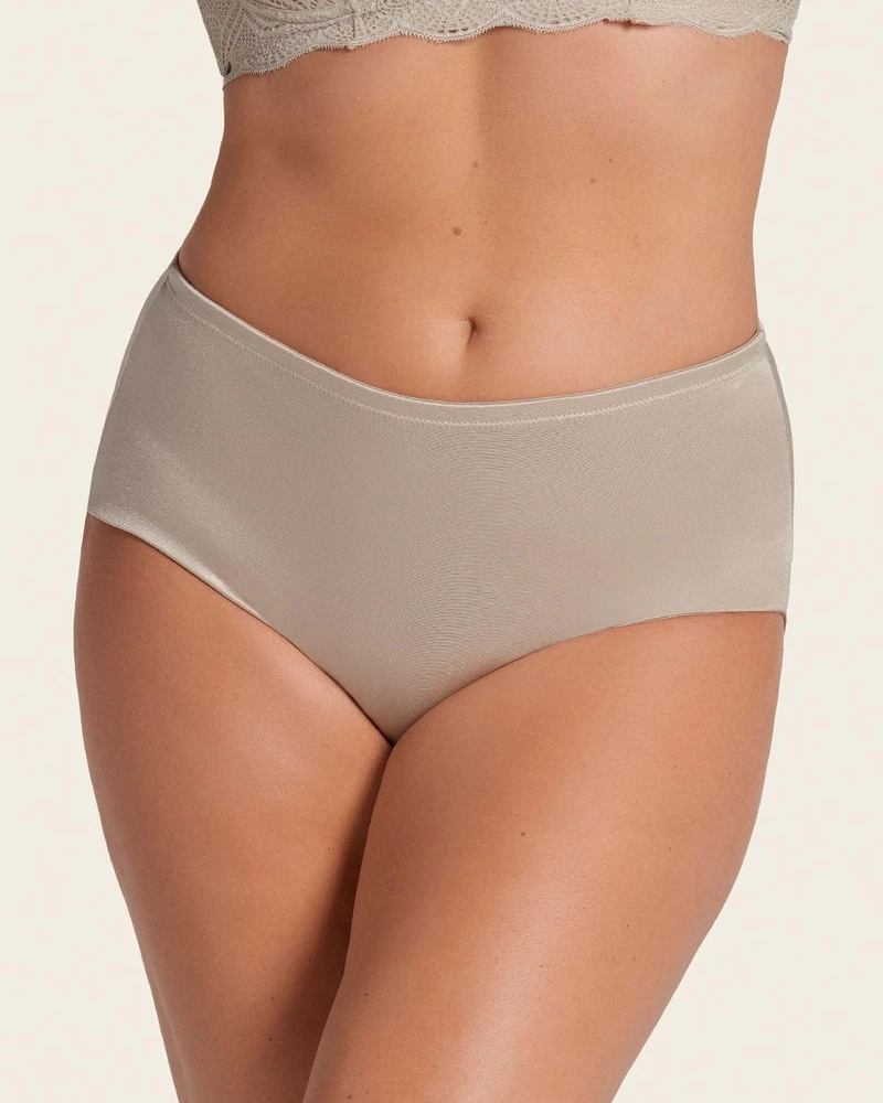 TUMMY CONTROL UNDERWEAR - This pasher panty features a front panel of our PowerSlim firm compression fabric to flatten your low and mid-tummy. NATURAL LIFTING - Ruched seam in the back for a light, natural-looking butt lifter effect in these panties for women HIGH CUT - High waisted underwear for women, hitting right at the belly button, and high-leg style at the bottom. The waistband and leg bands are made of soft microfiber. SOPHISTICATED TOUCH - The outside of these ladies underwear panties has a satin finish for a luxurious look. FRESH ALL DAY - 100% cotton gusset womens underwear. The comfort of this panty makes it the perfect choice for everyday wear.