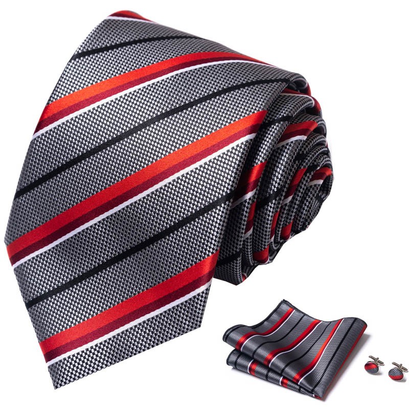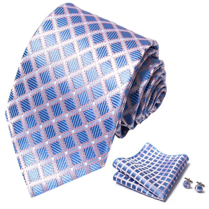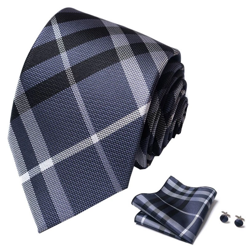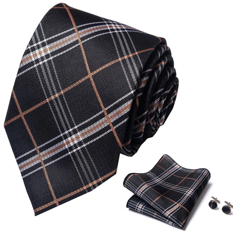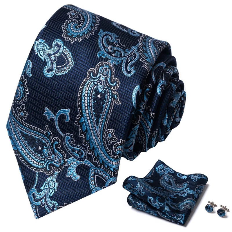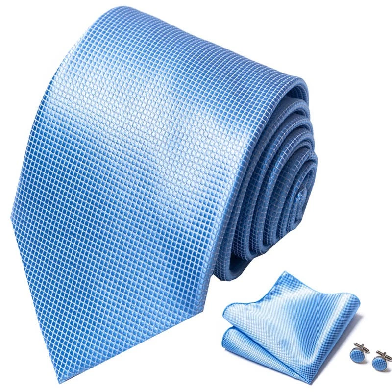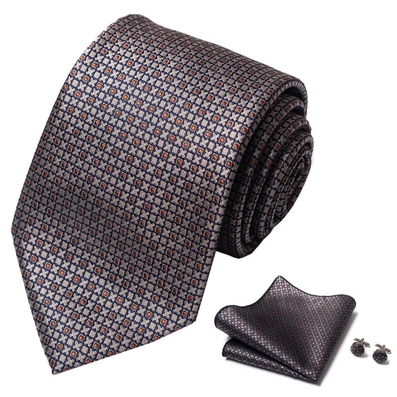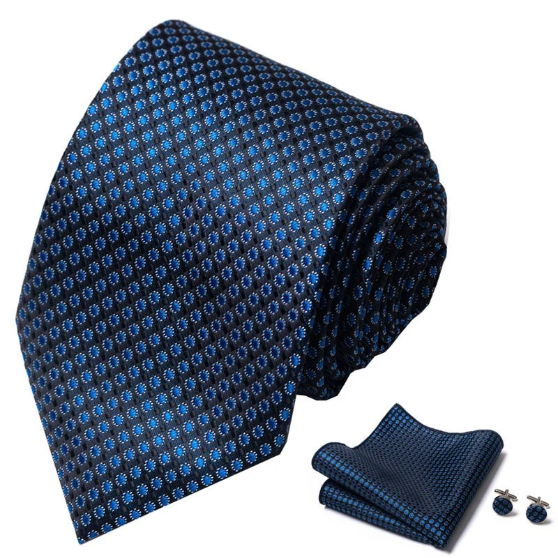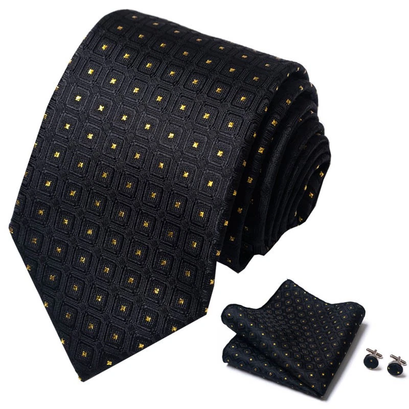 Tie set, great gift Set includes tie, square scarf, cufflinks Tie size:148x8x3.5cm Square scarf size:25x25cm Cufflinks size:1.5cm*1.5cm
