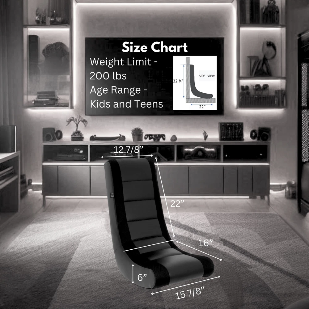 Metal Storage Cabinet with Doors and Shelves 5 Tier Metal Pantry Closet Cupboard 122.19 USD 129.99 USD Free shipping 6% off 118" Wide Baby Gate Metal Safety Playpen Fireplace Fence for Toddler/Pet/Dog 83.19 USD Free shipping Ergonomic Gaming Recliner Adjustable Footrest PU Leather Comfortable Sofa Chair 158.83 USD 168.97 USD Free shipping 6% off 10 Gallon Glass Aquarium Starter Kit LED Lighting Filtration System Fish Tank US 65.54 USD 69.72 USD Free shipping 6% off Ergonomic Gaming Chair w/ Footrest Reclining Video Game High Back Computer Chair 97.75 USD 103.99 USD Free shipping 6% off Outdoor Storage Shed Galvanized Steel Tool Storage Water Resistant Lockable Door 122.19 USD 129.99 USD Free shipping 6% off Mallard Floaters Decoy 12 Pack Rugged One-piece Design 73.32 USD 78.0 USD Free shipping 6% off Pink Cute Kawaii Gaming Chair for Girl Ergonomic Desk Racing Office Adjustable 91.03 USD 96.84 USD Free shipping 6% off Portable Training Kit for 9mm Dry Fire Laser Training System for Target Practice 121.72 USD 129.49 USD Free shipping 6% off Mini Fridge with Freezer 2.9 Cu.Ft Fridge Energy Saving Adjustable Thermostat 135.57 USD 144.22 USD Free shipping 6% off 10 Pack Folding Chairs Portable Stackable Seating Events 350lbs Capacity New 157.63 USD 167.69 USD Free shipping 6% off 5X3X6.1FT Outdoor Steel Storage Shed with Frame Floor and Lockable Doors Patio 158.8 USD 168.94 USD Free shipping 6% off Introducing The Crew Furniture Classic Video Rocker Gaming Chair, the ultimate seating solution for young gamers! Designed specifically for kids and teens, this video rocker gaming chair combines style, comfort, and functionality to elevate their gaming experience. Upholstered in premium PU faux leather and polyester mesh, this rocking floor gaming chair offers a sleek and durable finish that is easy to clean and maintain. This gaming chair video rocker features an ergonomic design that contours to the body, providing excellent support and reducing fatigue during long gaming sessions. The vibrant black and bold accent color combination adds a dynamic touch to any room, making it a standout piece in any gaming setup or kid's room. Lightweight and portable, this video rocker for kids and teens can be easily moved from the living room to the bedroom, or wherever their gaming adventures take them.The sturdy construction, featuring a one piece sustainable forestry engineered wood frame and recycled polyester fiber padding, ensures long-lasting use and comfort for eco-conscious families. Additionally, the non-marking base protects floors from scratches and scuffs, making it a practical choice for any home.Ready to use right out of the box, there’s no assembly required, allowing kids to start enjoying their new video gaming chair for kids immediately. Perfect for playing video games, watching movies, reading, or just lounging around, this versatile floor rocker gaming chair makes an excellent gift for birthdays, holidays, graduations, or any special occasion.Highly rated by users for its comfort, style, and durability, The Crew Furniture Classic Video Rocker Gaming Chair is the perfect addition to any young gamer's setup. Treat your child to the best in gaming comfort and style with this must-have gaming chair! Perfect for Young Gamers: Ideal for kids and teens, this video rocker gaming chair enhances gaming experience with comfort and style. Great for playing games, watching movies, reading, or relaxing. It's the perfect blend of fun and functionality. Ergonomic Comfort and Support: The Crew Furniture Classic Video Rocker supports posture and reduces fatigue during extended gaming sessions. Its contoured design provides excellent back support and comfort, ensuring young gamers hours of enjoyment. Premium and Eco-Friendly Materials: Upholstered with PU faux leather and polyester mesh, this floor gaming chair is durable and easy to clean. Made with sustainable forestry engineered wood and recycled polyester fiber cushion, so it's eco-friendly. Vibrant Color Combination: Featuring a sleek black and bold accent color design, this floor rocker gaming chair adds a pop of color to any room. Its eye-catching appearance makes it a standout piece in any gaming setup or kid’s room. Lightweight and Portable: Easy to move around, this rocking floor gaming chair for kids can be used in the living room, bedroom, or any gaming setup. Its lightweight nature allows for convenient relocation and storage. Sturdy Construction: Featuring a wood frame and poly fiber padding, this game chair offers long-lasting use and comfort. Unlike folding rockers which rely on hook and loop fasteners, this one-piece frame holds its shape, providing constant support. Non-Marking Base: Equipped with a non-marking base, this kids rocking gaming chair protects your floors from scratches and scuffs. This feature ensures that you can place the video game chair on any floor surface without worry. No Assembly Required: The Crew Furniture Classic Video Rocker Gaming Chair is easy to use right out of the box so kids can start enjoying their new video rocker immediately. This hassle-free setup means more time for fun and games. Great Gift Idea: Makes an excellent gift for birthdays, holidays, graduations, or any special occasion for young gamers. This racing rocker gaming chair is a thoughtful present that combines fun and practicality, sure to be appreciated by any child. Customer Approved: Positive reviews highlight its appeal to both kids and parents, making it a trusted choice for a video rocker gaming chair. Ages 3 yrs and up; Max weight 200 lbs Width - 15.875" x Depth -22" x Height - 32.75" Gold Ultra Premium 4.5 lb Firelogs, 6-Pack Case, 3 Hour Burn for Fireplace 32.89 USD Free shipping 4 Slice Toaster Oven with 3 Settings Includes Baking Rack and Pan Black New 26.82 USD Free shipping 5 Qt. Plastic Storage Bins with Lids Clear Stackable Totes Containers Box 20Pk 40.47 USD Free shipping Hardside Fibertech Luggage 28" Checked Luggage Suitcas