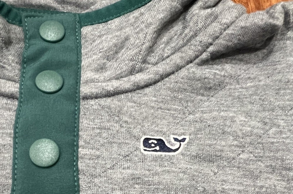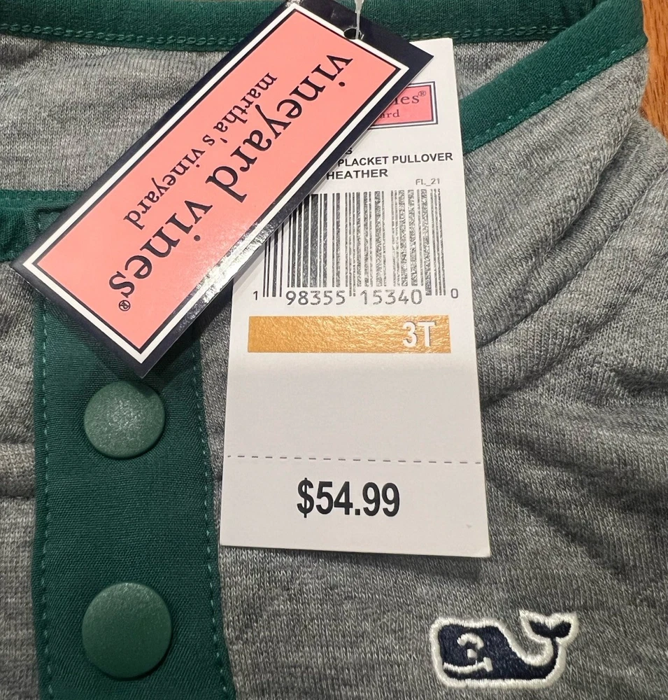 Vineyard Vines Grey Heather Diamond Pullover Teal Accent Unisex New With Tags This pullover fleece is designed for babies and toddlers and features a snap closure for easy dressing.The pullover style and quilted accents add a touch of sophistication to the overall look, making it a stylish and practical addition to any little one's wardrobe. Made with high-quality materials and brand new with tags, this pullover is sure to be a favorite for both parents and children alike. Item ships free via USPS Ground advantage sealed in a bag for protection