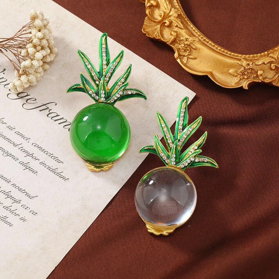 Classic Vintage Women Girls Resin Stone Pineapple Pins Brooches Corsage Pin