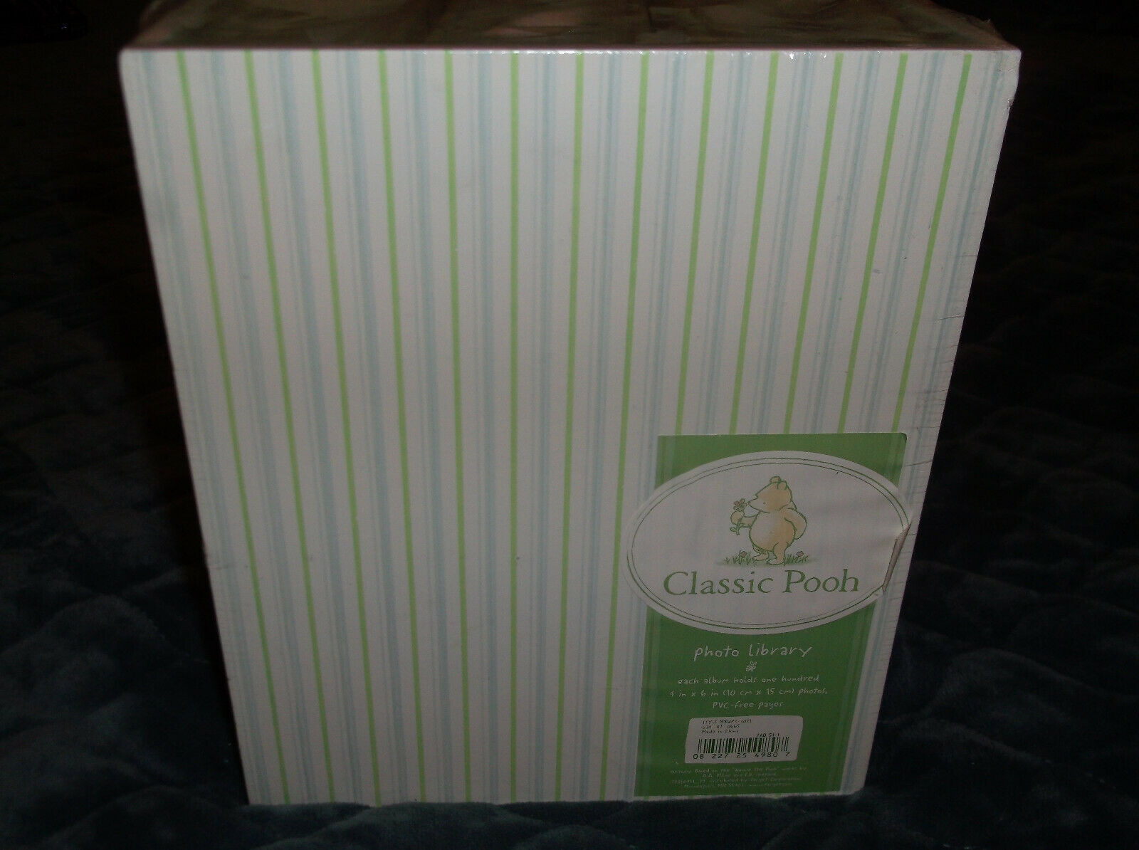 THIS IS FOR A BRAND NEW SEALED CLASSIC POOH PHOTO LIBRARY FOR THE BABY'S 1ST 3 YEARS. THE 3 ALBUM ARE DISPLAYED ON A DECORATED SMALL WOODEN RACK EACH ALBUM HOLDS 100 4X6 INCH PHOTOS AND THEY ARE PVC FREE PAGES INSIDE.