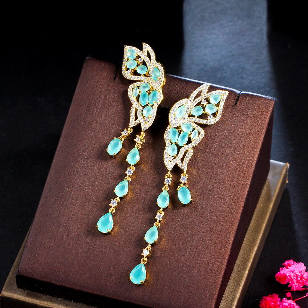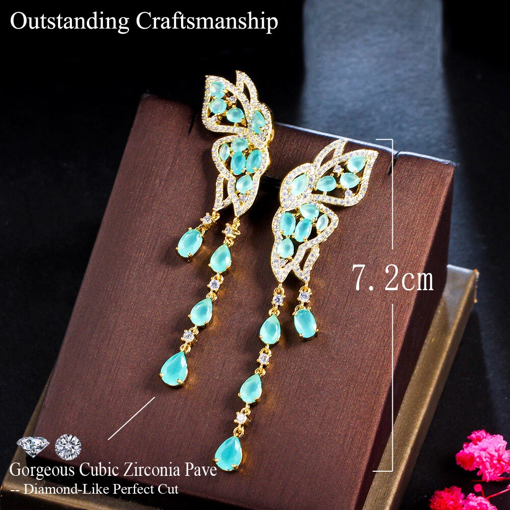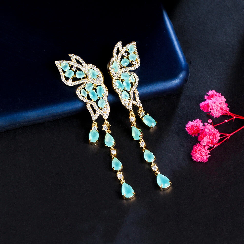 gtin13: Does not apply Features: Gorgeous, Classic, Luxury Type: Earrings Material: CZ Crystal Suitable for: Brides, Bridesmaids, Mother, Wife, Girfriend, Daughters Main Stone Shape: Pear Color: Blue Item Length: 7.2 cm Metal: Yellow Gold Plated Occasion: Anniversary, Birthday, Christmas, Engagement, Graduation, Mother's Day, Valentine's Day, Wedding Country/Region of Manufacture: China Base Metal: Brass Shape: Butterfly Style: Dangle/Drop, Tassel Main Stone: Cubic Zirconia UPC: Does not apply Theme: Women Classic Gold Plated CZ Butterfly Long Tassel Drop Earrings Main Stone Color: Blue Item Type: Women Gold Plated Blue Zircon Butterfly Long Tassel Drop Earrings Country of Origin: China Secondary Stone: Cubic Zirconia Brand: Pera Cz