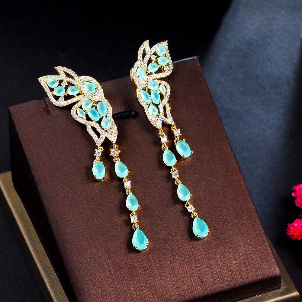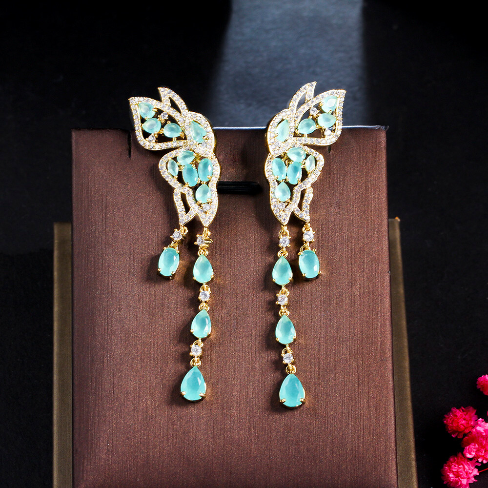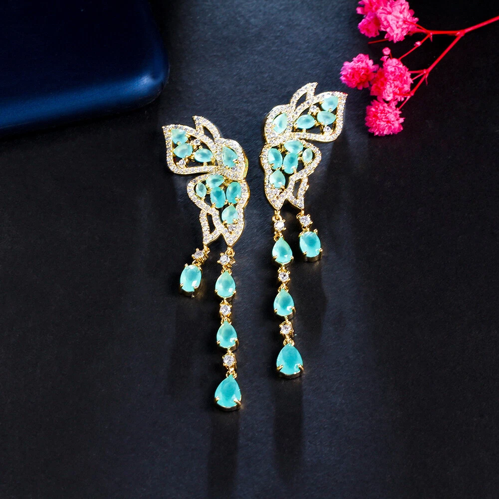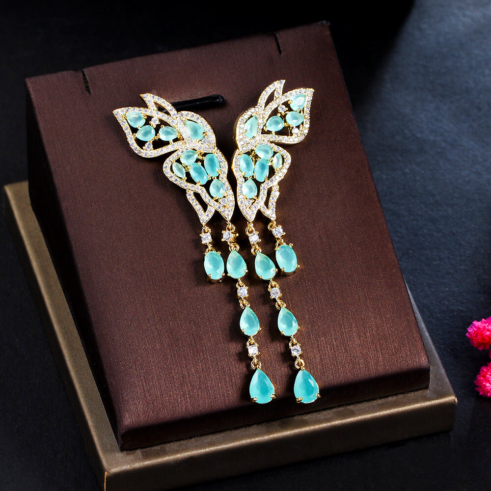 gtin13: Does not apply Features: Gorgeous, Classic, Luxury Type: Earrings Material: CZ Crystal Suitable for: Brides, Bridesmaids, Mother, Wife, Girfriend, Daughters Main Stone Shape: Pear Color: Blue Item Length: 7.2 cm Metal: Yellow Gold Plated Occasion: Anniversary, Birthday, Christmas, Engagement, Graduation, Mother's Day, Valentine's Day, Wedding Country/Region of Manufacture: China Base Metal: Brass Shape: Butterfly Style: Dangle/Drop, Tassel Main Stone: Cubic Zirconia UPC: Does not apply Theme: Women Classic Gold Plated CZ Butterfly Long Tassel Drop Earrings Main Stone Color: Blue Item Type: Women Gold Plated Blue Zircon Butterfly Long Tassel Drop Earrings Country of Origin: China Secondary Stone: Cubic Zirconia Brand: Pera Cz