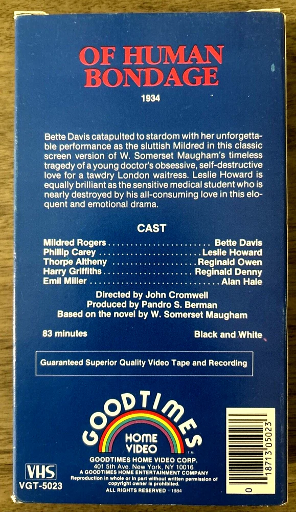 HomeClassic-Of Human Bondage: Bette Davis & Leslie Howard 1984 VHS Black & White