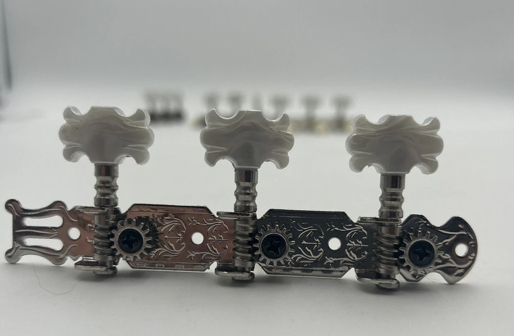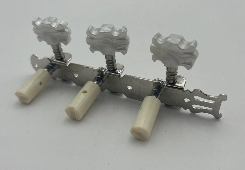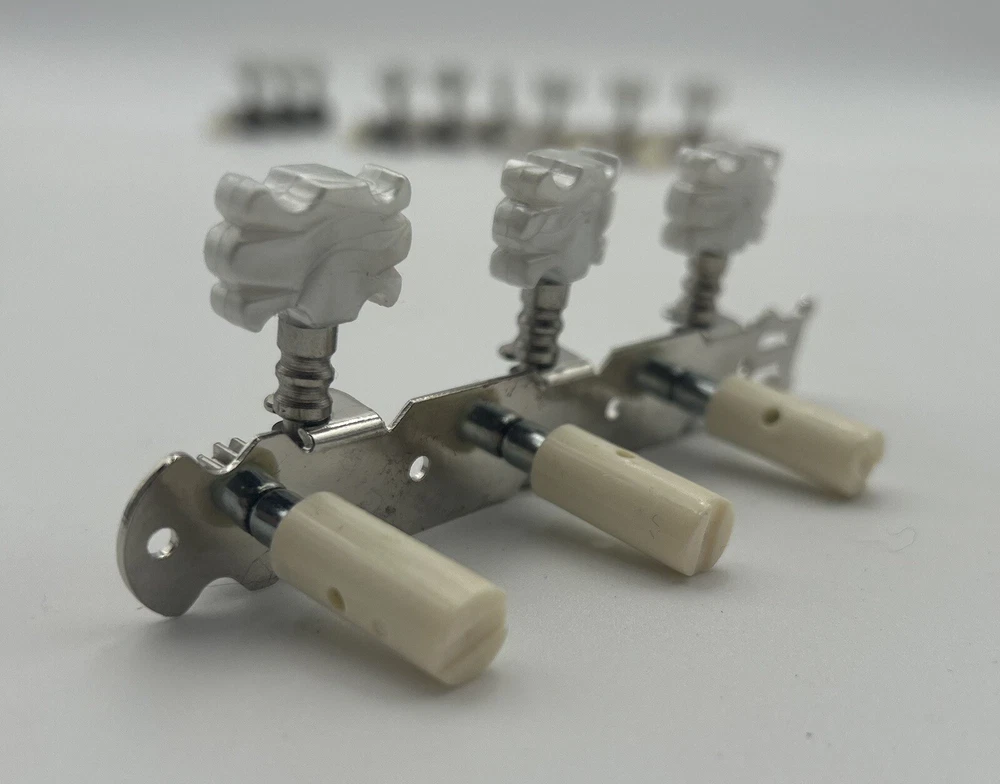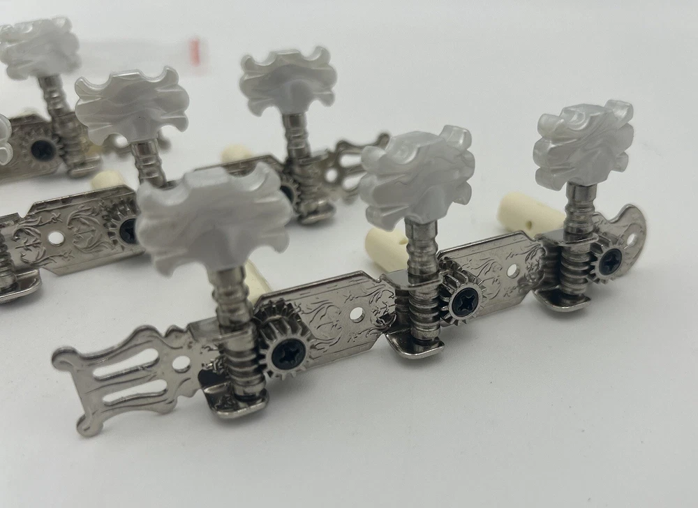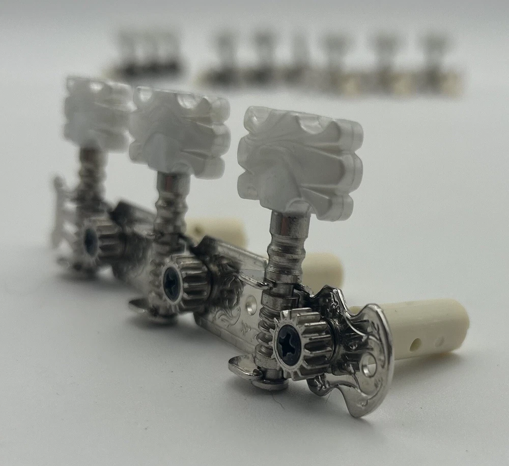 Enhance the sound of your classical guitar with this set of four machine heads. Designed to fit most classical guitars, these tuners are perfect for those who want to achieve the perfect pitch. Made in China, these white tuners are durable and easy to use. Each machine head is crafted with precision and designed to provide optimal performance. The set includes four tuners, making it easy to tune all the strings on your guitar. These tuners are perfect for both beginners and advanced players, and are a must-have for any classical guitar enthusiast.