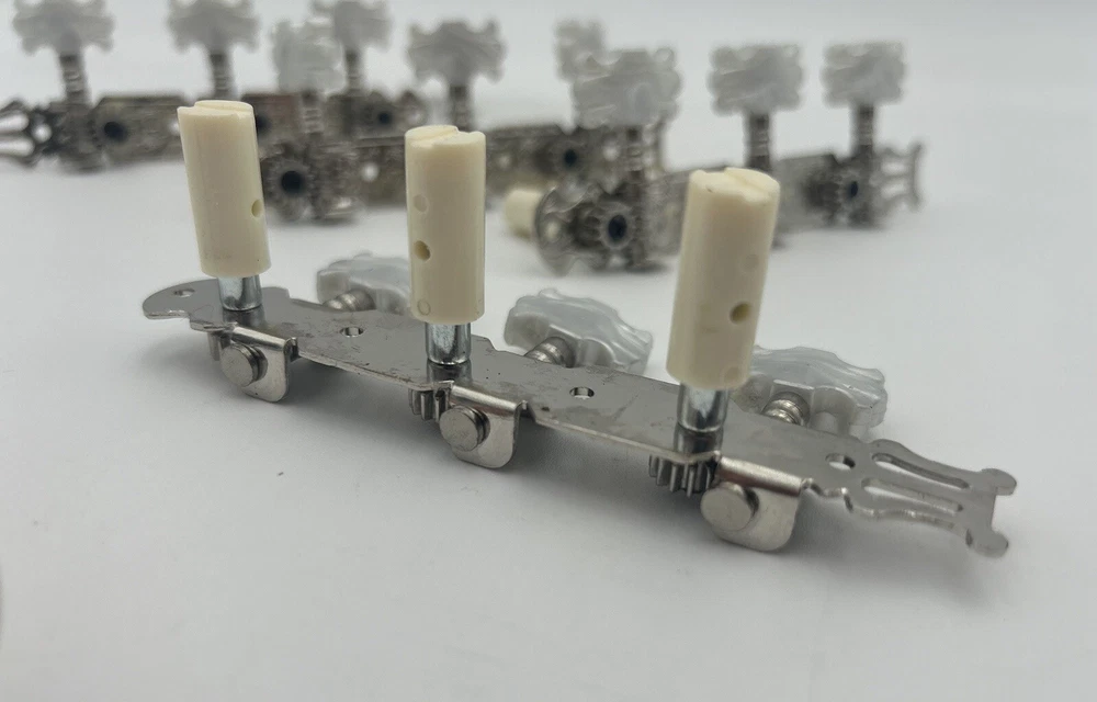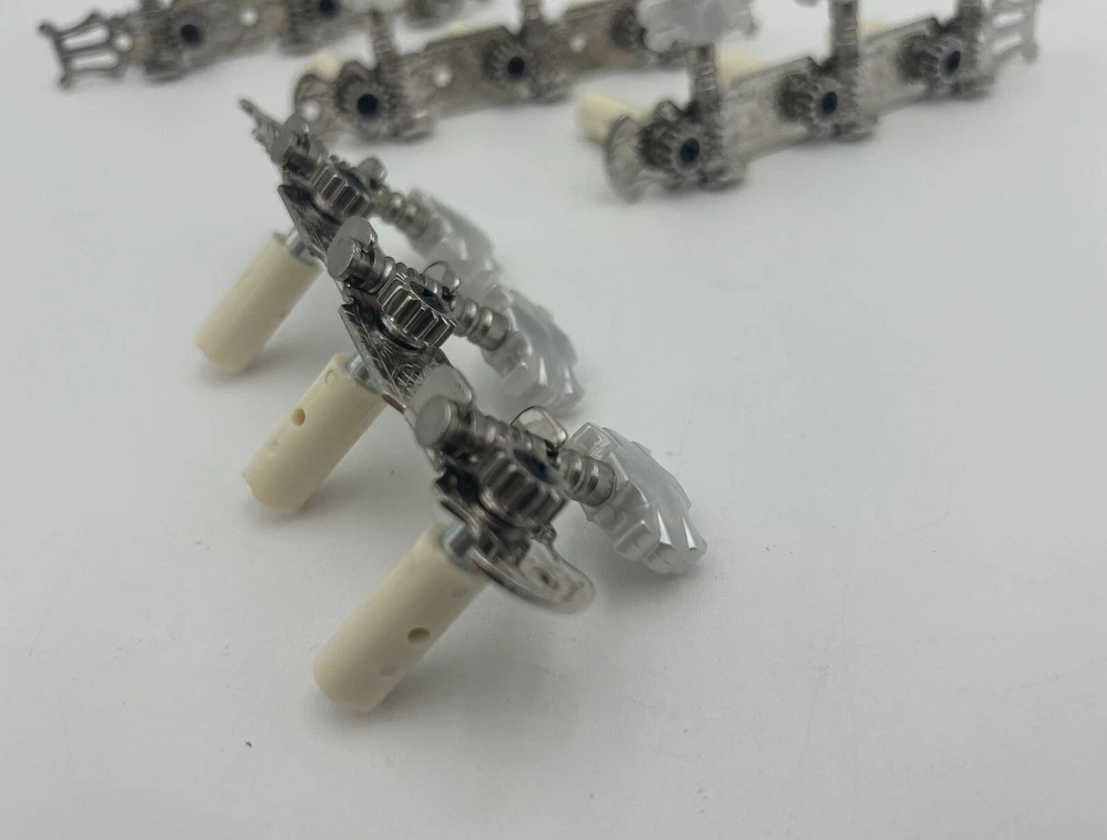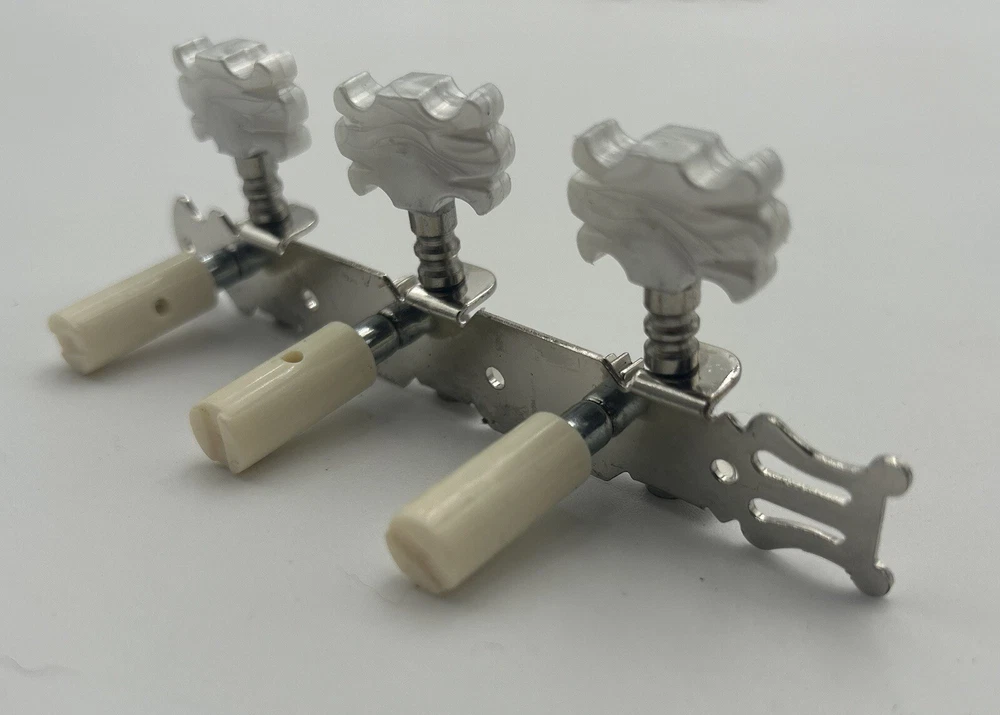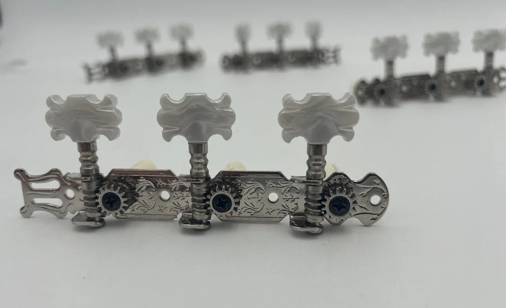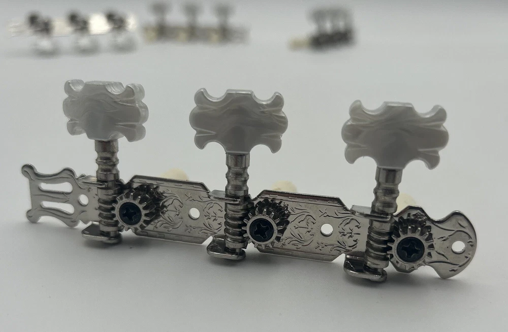 Enhance the sound of your classical guitar with this set of four machine heads. Designed to fit most classical guitars, these tuners are perfect for those who want to achieve the perfect pitch. Made in China, these white tuners are durable and easy to use. Each machine head is crafted with precision and designed to provide optimal performance. The set includes four tuners, making it easy to tune all the strings on your guitar. These tuners are perfect for both beginners and advanced players, and are a must-have for any classical guitar enthusiast.