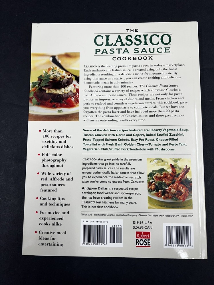 Indulge in the authentic taste of Italian cuisine with The Classico Pasta Sauce Cookbook. Written by Antigone Dallas and published by Rose Incorporated, Robert in 2002, this first edition cookbook offers 192 pages of delicious recipes that make use of authentic Italian pasta sauces. Whether you're young or old, this cookbook is perfect for anyone looking to impress their guests with mouth-watering home-cooked meals. The Classico Pasta Sauce Cookbook is a vintage trade paperback that measures 8 inches in length, 10.5 inches in height, and 0.5 inches in width. It is highly recommended for those who are interested in cooking, cookbooks, food, and drinks, as well as those who love Italian cuisine. This illustrated cookbook is perfect for cooking enthusiasts who want to try new recipes, and it contains a wide variety of dishes categorized into different topics such as National Cooking, Cooking by Ingredient, Methods/Quick & Easy, and Regional & Ethnic/Italian.