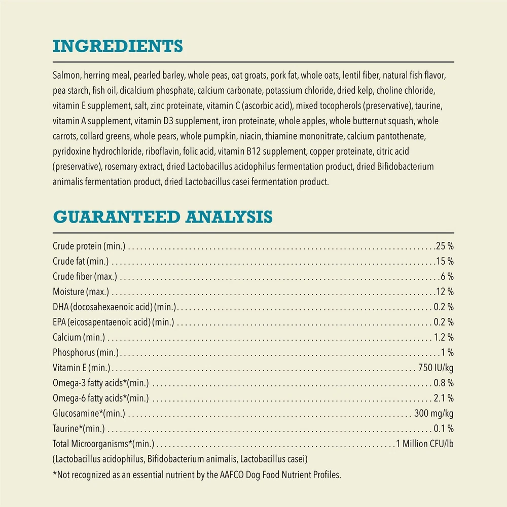 Thoughtfully balanced recipes with protein-rich salmon, wholesome grains, vegetables and fruit. Packed with nutrients, not fillers, for less than $1.40/day*. This dog food helps support immune health with antioxidant-rich ingredients, plus added Vitamin E. This nutritious dry dog food helps support healthy skin and coat with naturally occurring Omega-3 and Omega-6 fatty acids. Fiber from wholesome grains, vegetables and fruit, plus a blend of probiotics, help support digestive health in this kibble. This dog food is made in the USA with quality ingredients from around the world.