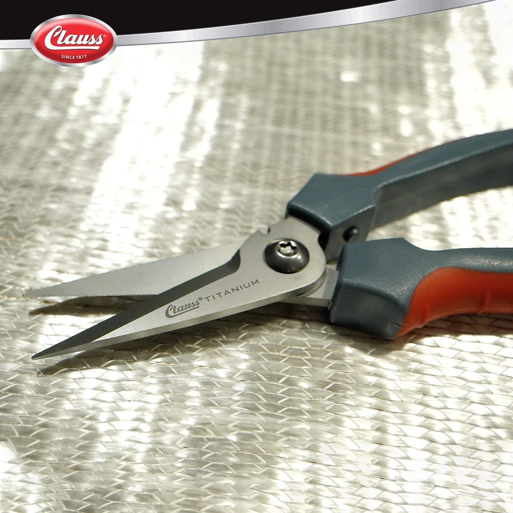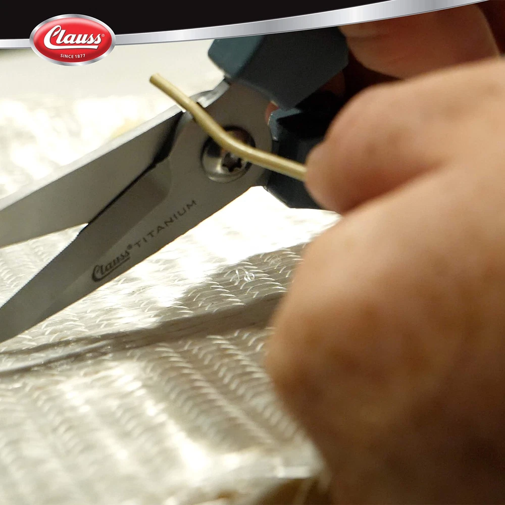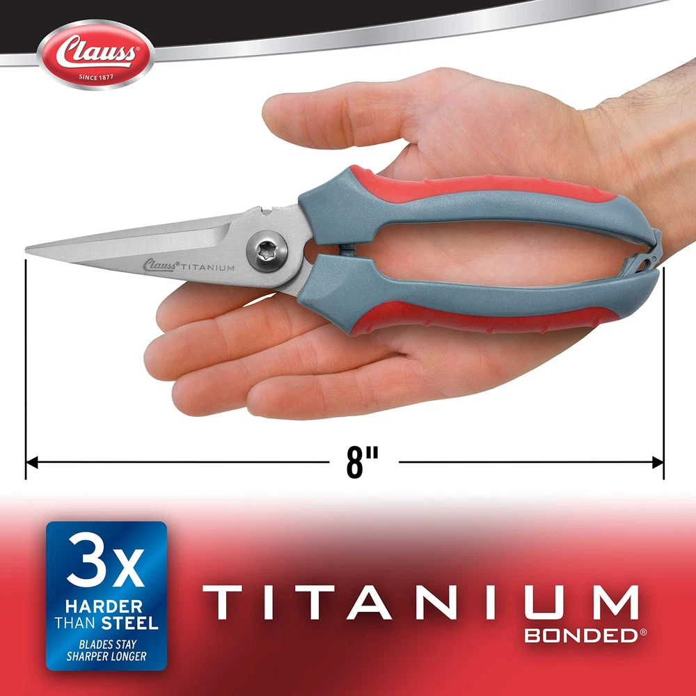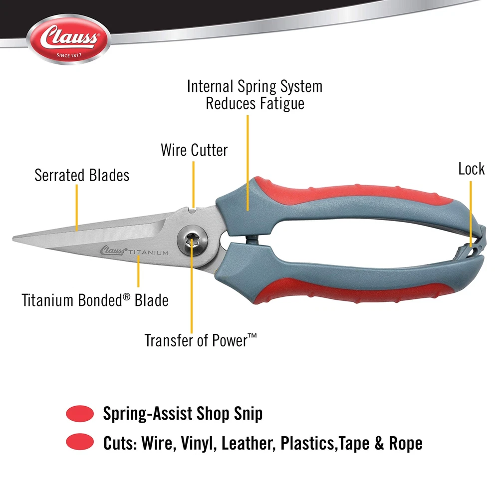 Clauss 8" Titanium Snips with Wire Cutter Spring-Assist Serrated Blades Gray ...