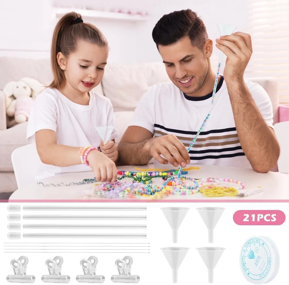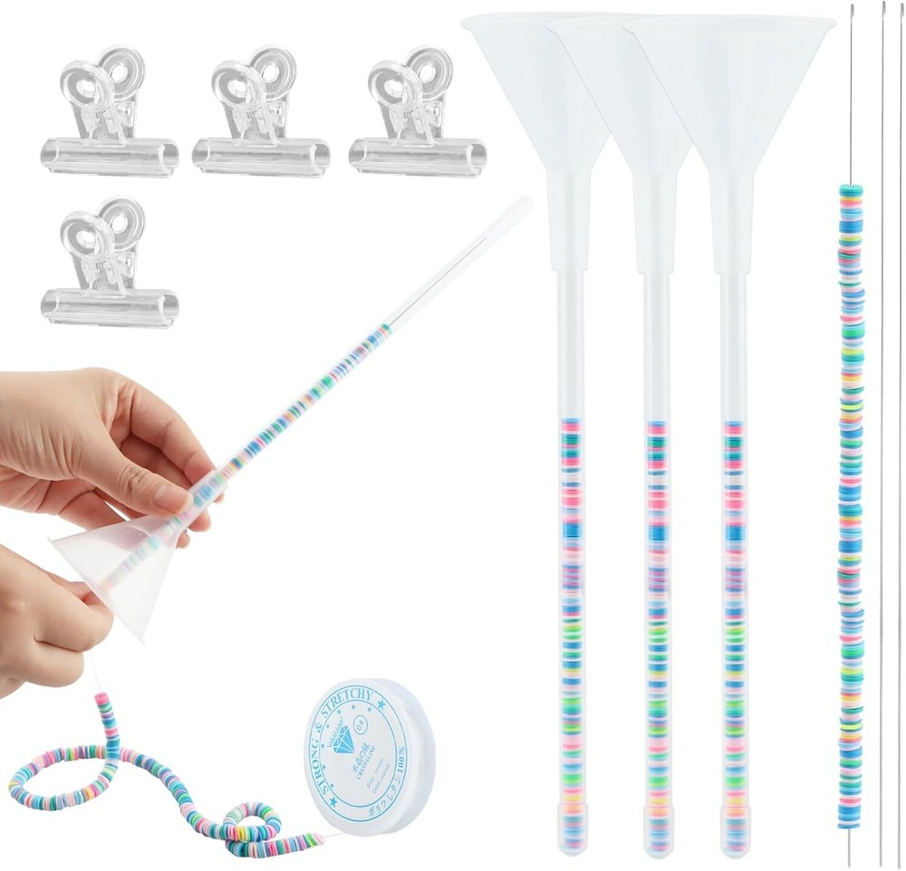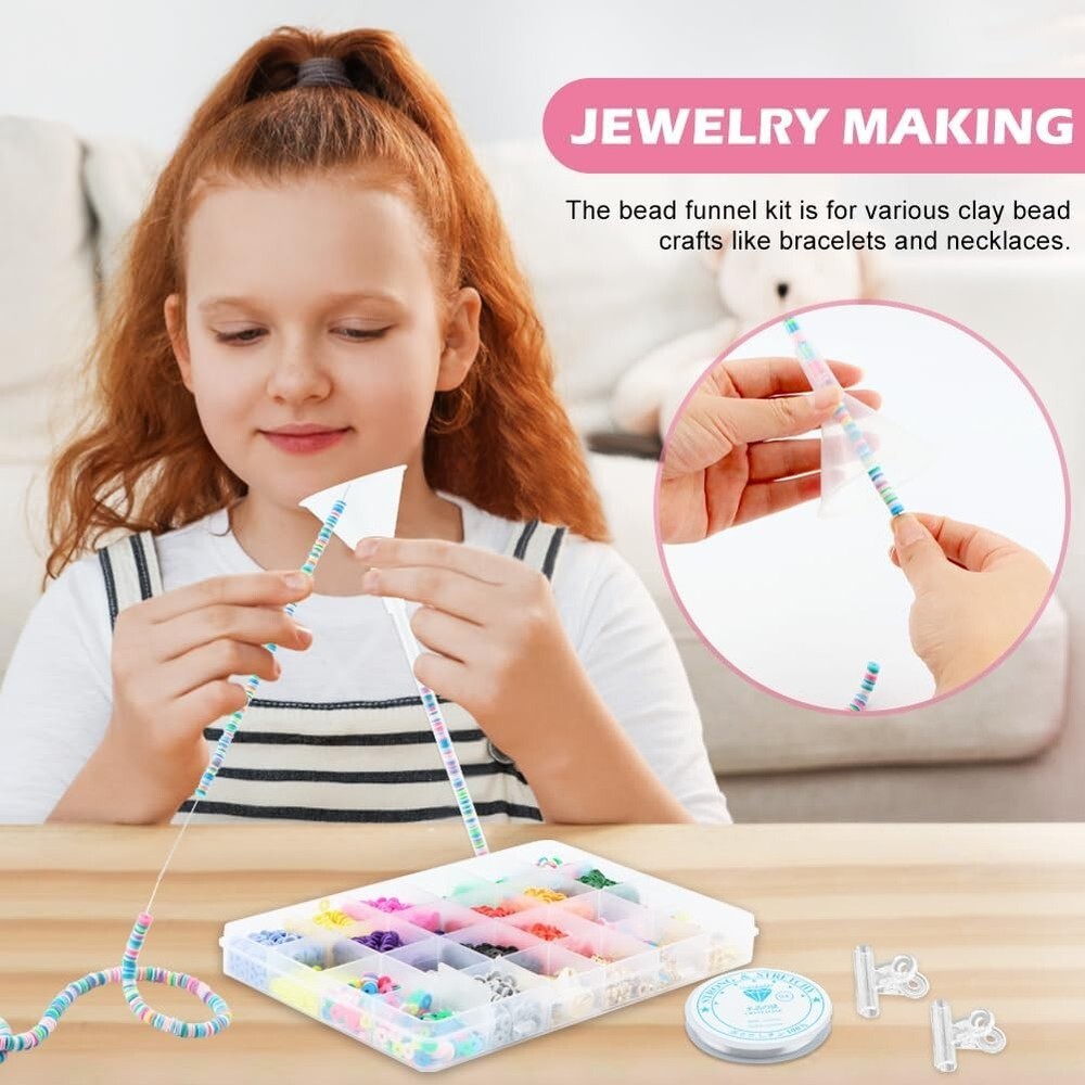 Durable Material: The funnel and tube are made from pvc, these tools are durable and long-lasting, suitable for extended use. The beading needles are made of stainless steel, not easy to break or go rusty, strong and durable. You can use string bead funnel kit for a long time and many times with confidence For Hand DIY: Come with clips, that can prevent the clay beads from slipping off the other end of the string.The beading tools allow you to quickly make your jewelry and create unique beaded jewelry with friends and family.You will enjoy a happy hand craft time Long Needles: The diameter of the beading needle is about 0.9mm, which can easily go through smaller size beads, wooden beads, plastic beads. The length is about 26cm,which is large capacity, the extra long needle can string more beads at once, saving time Jewelry Making: The bead funnel kit is for various clay bead crafts like bracelets and necklaces; transparent design allows for easy bead arrangement observation.You can make colorful bracelets, necklaces, waist chains and other beautiful jewelry Bead Funnel Kit: You will get 4pcs funnel,4pcs round tube,4pcs transparent cap,4pcs 0.9mm crochet hook,1pc coil,4pcs clip for quick and efficient beading; complete clay bead chain in under a minute,practical tool for making bracelet jewelry